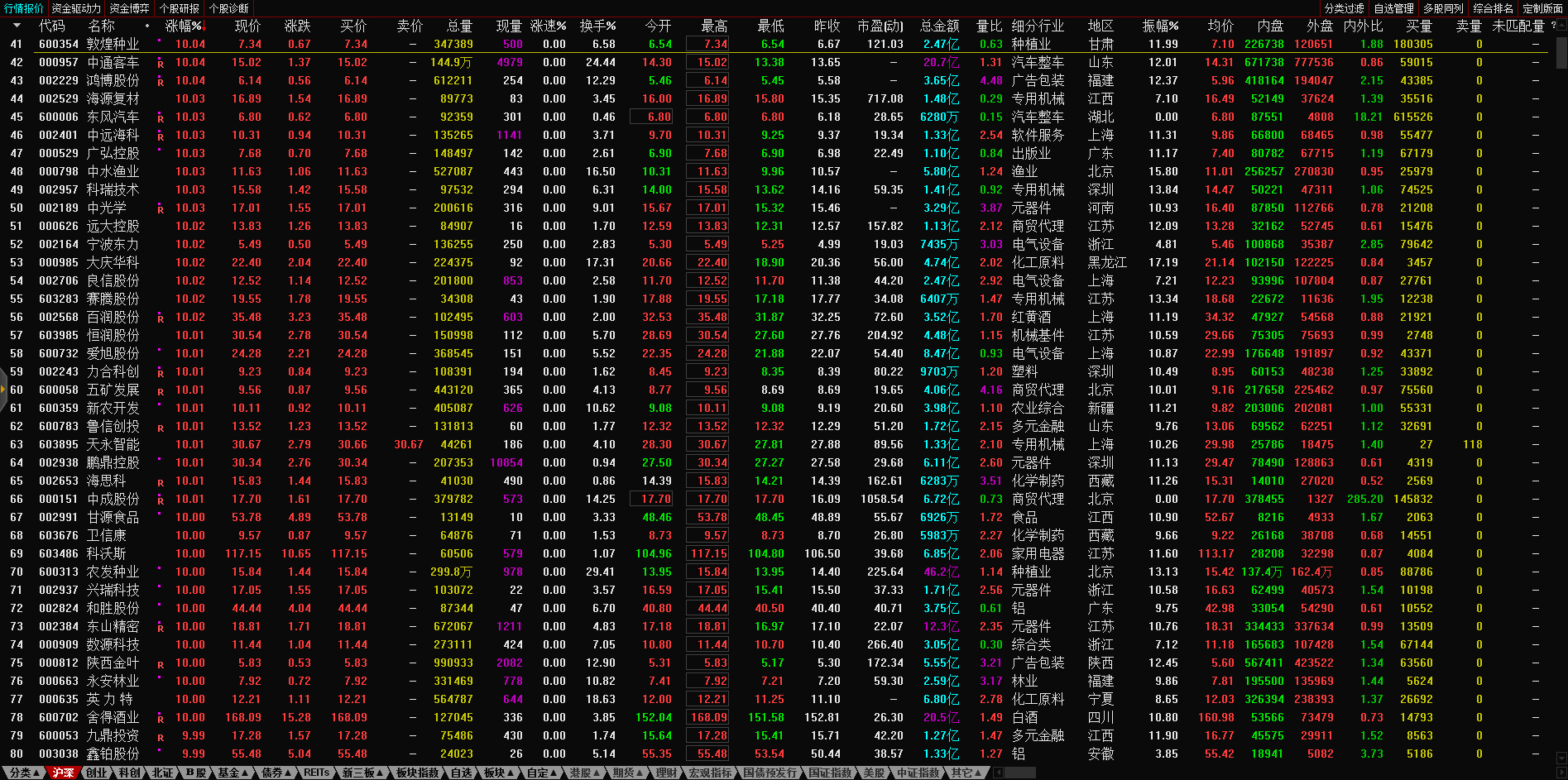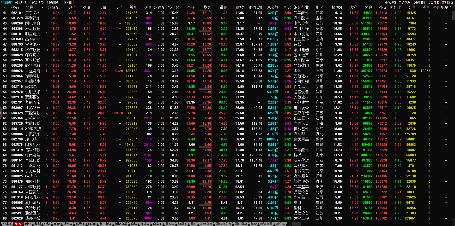 13:03 汽车零部件板块午后持续拉升,精进电动、博俊科技(300926)20cm涨停,渤海汽车、腾龙股份(603158)、合力科技(603917)、广东鸿图(002101)等近10股封涨停板。