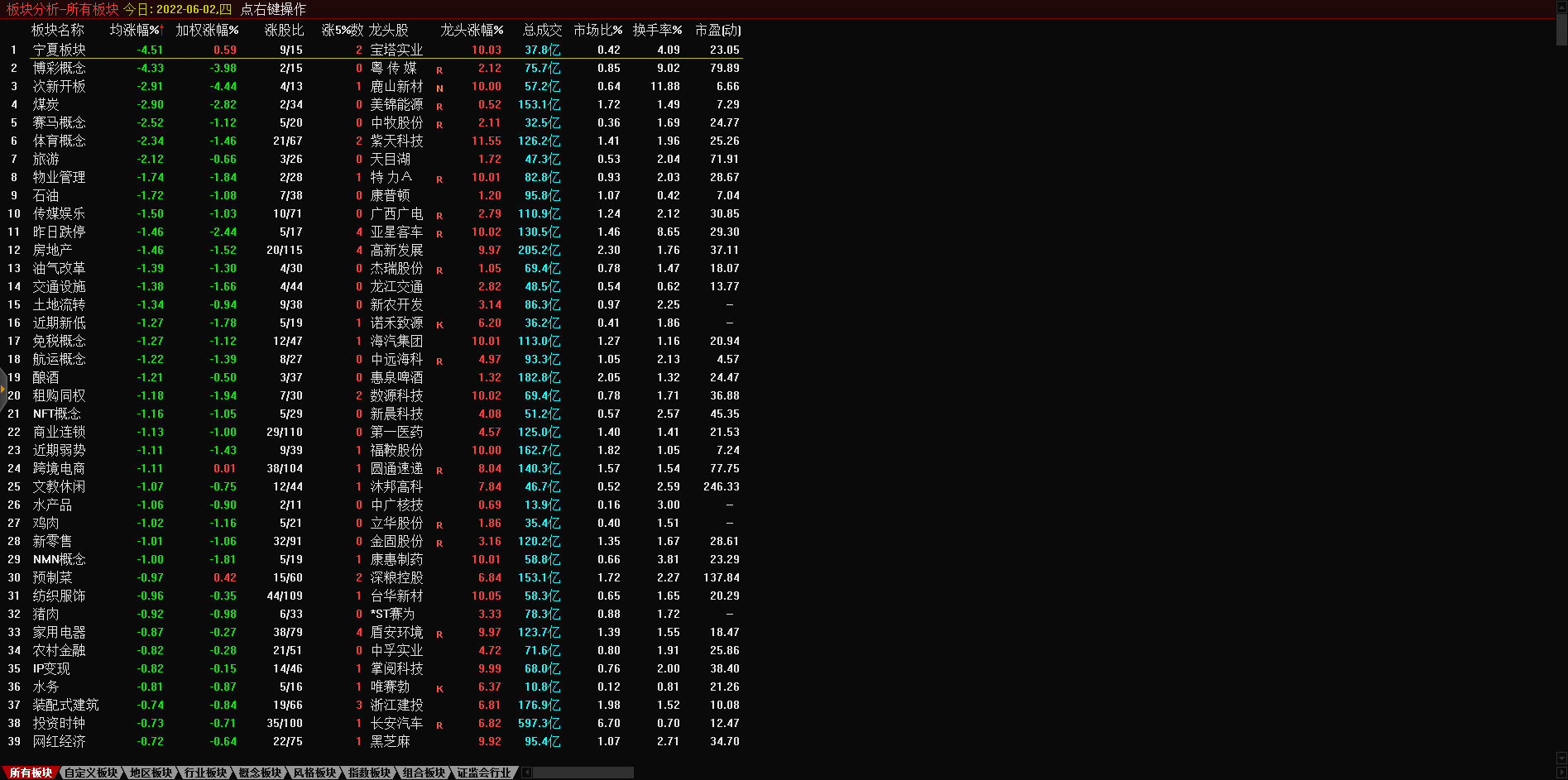 09:39 煤炭板块开盘快速走低,山煤国际(600546)跌超8%,大有能源(600403)、上海能源(600508)、山西焦煤(000983)、兖矿能源(600188)等跌超4%。