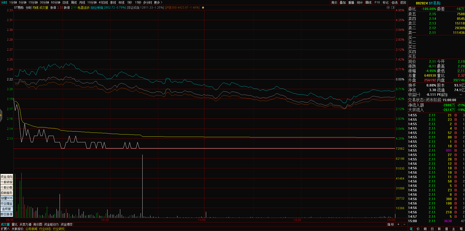 11:13 巨轮智能触及涨停,成交额30.68亿元。