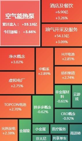 截至午间收盘,上证指数、深证成指、创业板指跌幅均收窄至0.5%以内,北向资金逆势净流入超过23亿元。两市共2652只个股上涨,下跌个股减少至1955只。TOPCON电池、钙钛矿电池等光伏领域相关个股逆势大涨,拓日新能(002218)、沐邦高科(603398)等封上涨停。