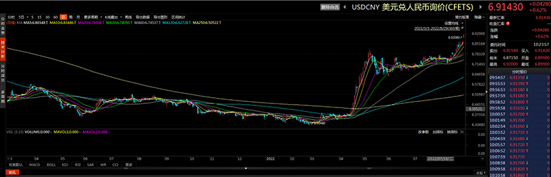 在岸人民币对美元跌破6.91关口,离岸人民币对美元逼近6.93大关——美联储强“鹰”之下,人民币承压回落,跌至近两年低点。