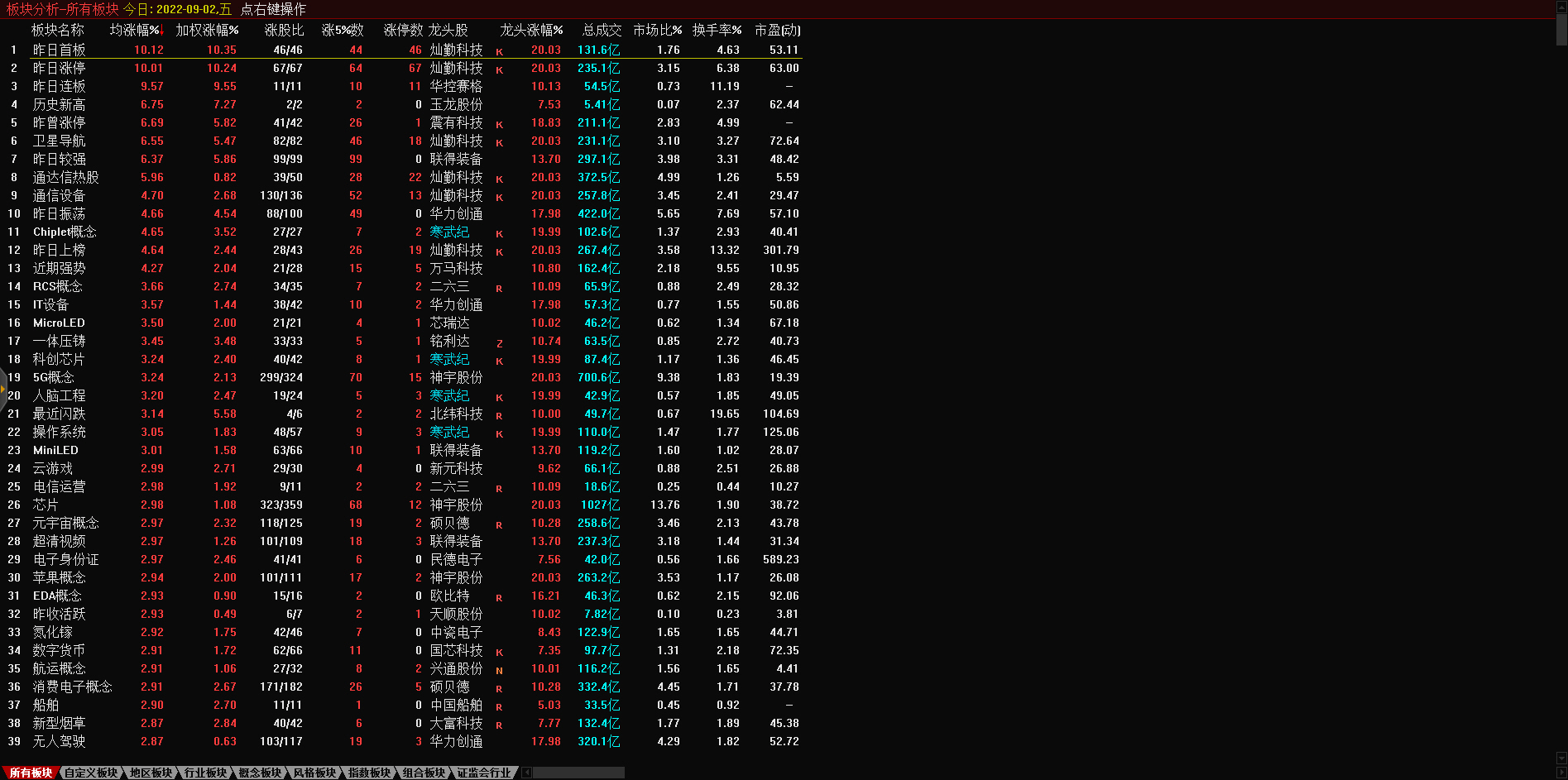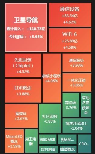 盘面上,卫星导航通信板块领涨两市,神宇股份(300563)、灿勤科技20cm涨停,合众思壮(002383)、中国卫星(600118)、盈方微(000670)、三维通信(002115)、二六三(002467)、天奥电子(002935)、北纬科技(002148)、云鼎科技(000409)等十五余股涨停,板块掀涨停潮,消息面上,余承东近日透露华为Mate50系列将在通讯上有“向上捅破天”的技术,根据此前天风国际分析师郭明錤的爆料,华为Mate50系列将支持卫星通信,提供紧急短信服务;汽车整车板块尾盘异动,安凯客车(000868)触及涨停,亚星客车(600213)、中通客车(000957)、中国重汽(000951)、中集车辆(301039)、金龙汽车(600686)等跟涨;食品加工板块午后回暖,桂发祥(002820)、劲仔食品(003000)双双涨停,皇氏集团(002329)、惠发食品(603536)、贝因美(002570)、熊猫乳品(300898)等跟涨;白酒、饮料制造板块持续走低,德利股份(605198)跌超5%,舍得酒业(600702)、洋河股份(002304)、古井贡酒(000596)、李子园(605337)跌超3%;CRO概念板块午后继续走低,美迪西跌超6%,睿智医药(300149)、泰格医药(300347)、凯莱英(002821)等跟跌。