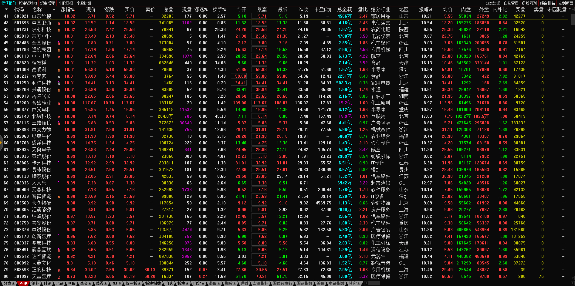 10:45 卫星通信设备及服务板块继续拉升神宇股份20cm涨停,合众思壮、盈方微、三维通信、二六三、纵横通信(603602)、北纬科技、云鼎科技等涨停,板块掀涨停潮。