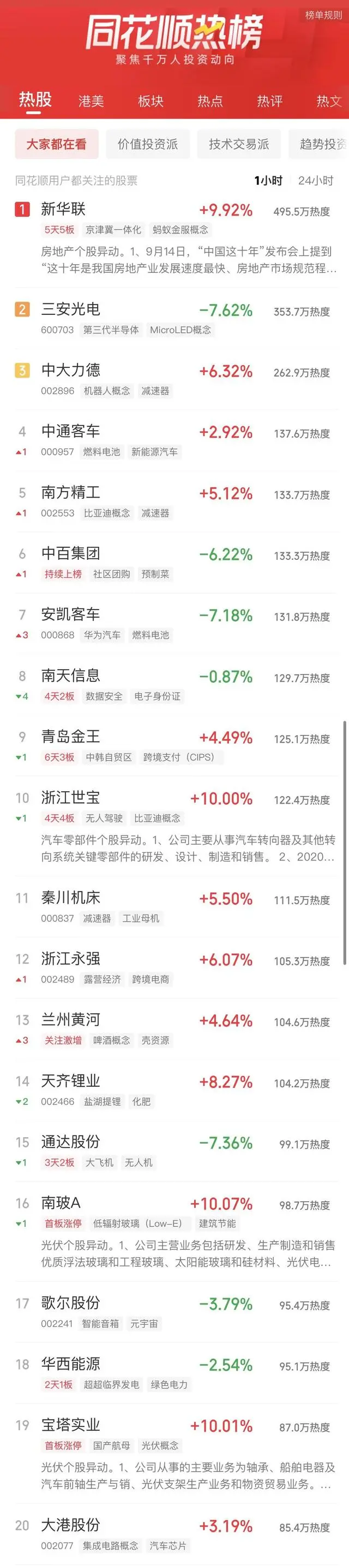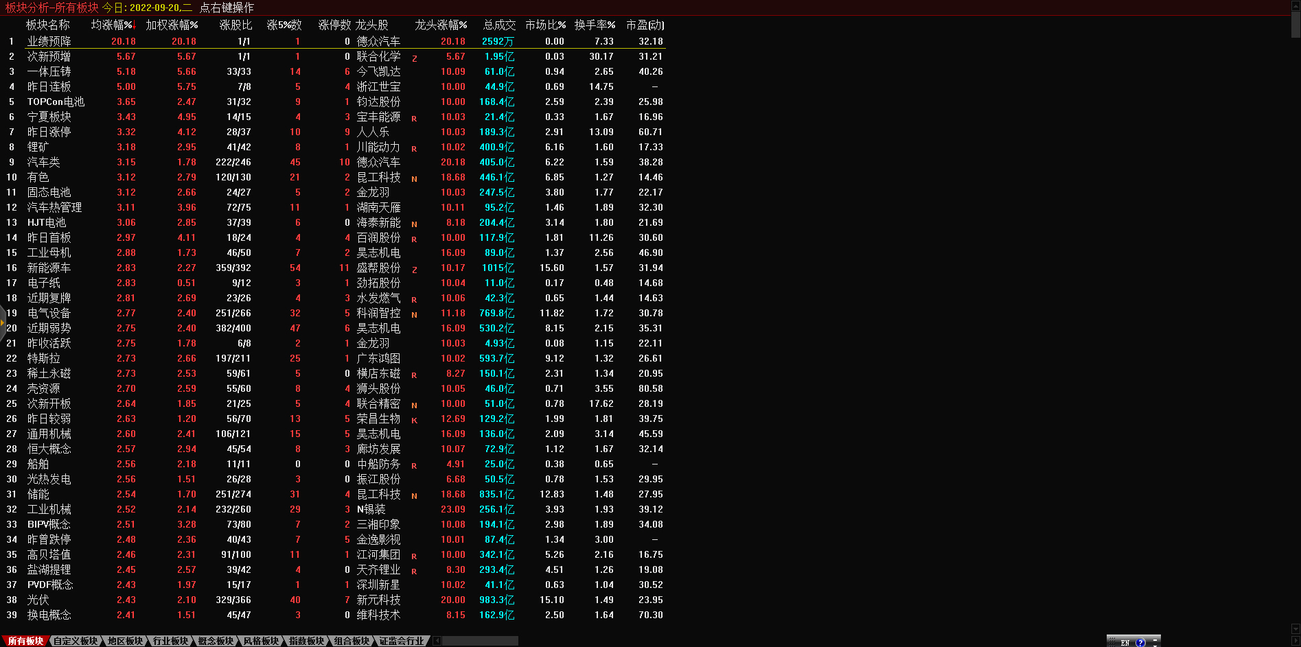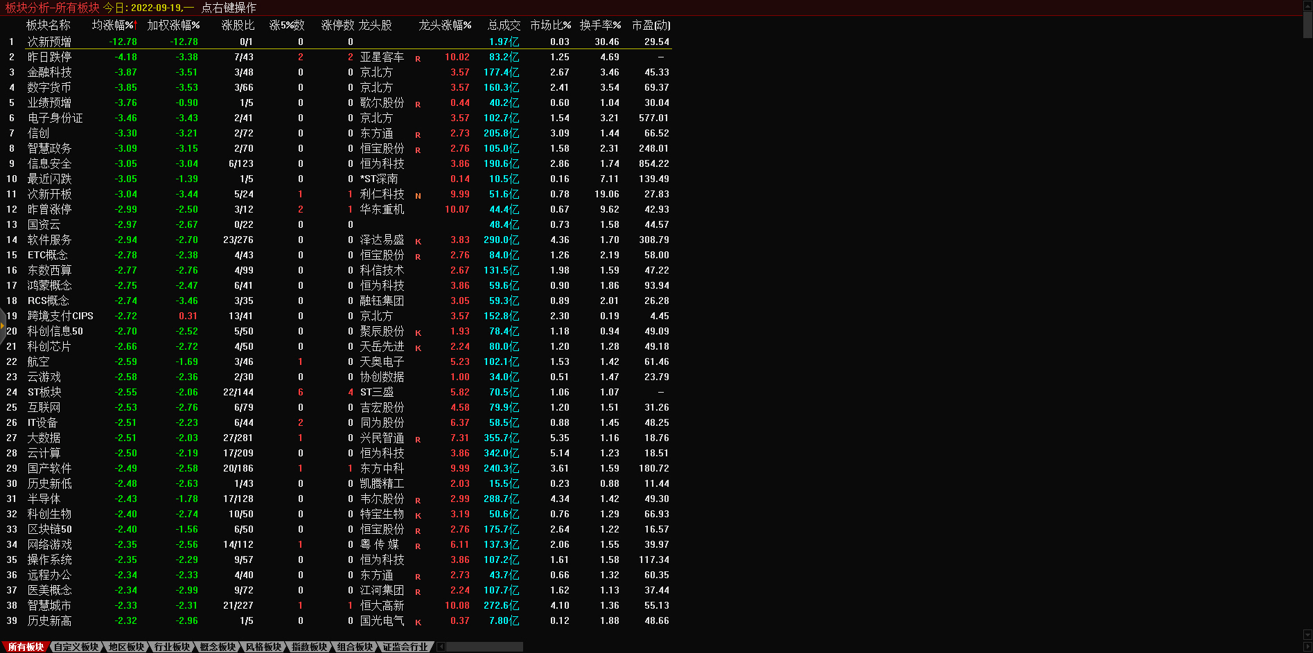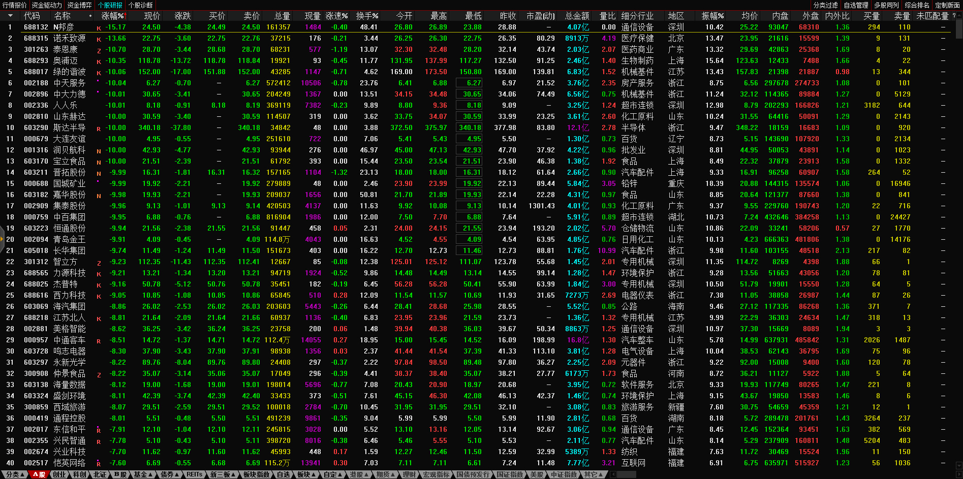 盘面上,大金融板块全天护盘,中国银河(601881)午后一度涨超8%,东兴证券、杭州银行(600926)、民生控股(000416)、中信银行、广发证券、国信证券、中信建投(601066)等跟涨。饮料制造板块涨幅居前,百润股份(002568)涨超6%,今世缘(603369)、重庆啤酒(600132)、青岛啤酒(600600)、洋河股份(002304)等跟涨。装配式建筑板块涨幅居前,建艺集团(002789)、东易日盛(002713)、全筑股份(603030)涨停,杭州园林(300649)、中国建筑、福星股份(000926)、郑中设计(002811)、中天精装(002989)等跟涨,消息上,发改委昨日在新闻发布会上表示,我国新能源产业全球领先,为全球市场提供超过70%的光伏组件;绿色建筑占当年城镇新建建筑面积比例提升至84%。汽车芯片、半导体板块领跌两市,斯达半导(603290)跌停,则成电子跌超11%,佳缘科技(301117)、钜泉科技、赛微微电、大港股份(002077)、东微半导、国芯科技、创耀科技、东尼电子(603595)、士兰微(600460)、北方华创(002371)等跟跌。一体化压铸板块跌幅居前,长华集团(605018)接近跌停,泉峰汽车(603982)、合力科技(603917)、云海金属(002182)、瑞鹄模具(002997)、旭升股份(603305)等多股跌超4%。数据安全板块跌幅居前,海量数据(603138)、京北方(002987)跌超7%,汇纳科技(300609)、天融信(002212)、南天信息(000948)等跟跌。