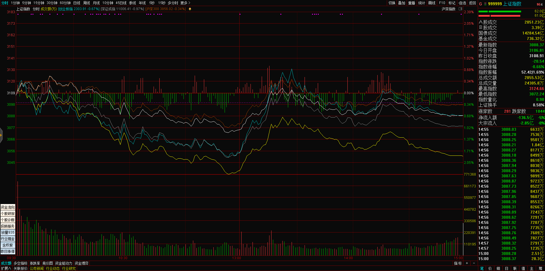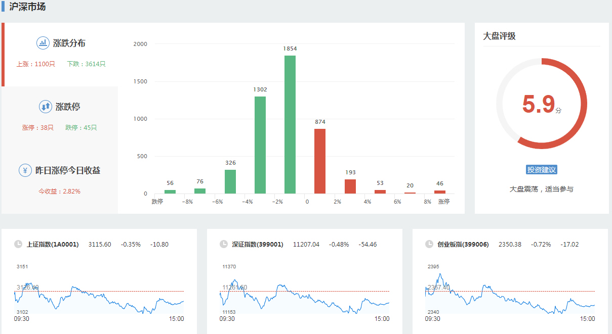 A股收评:指数全天大幅震荡下跌 大金融、白酒板块护盘