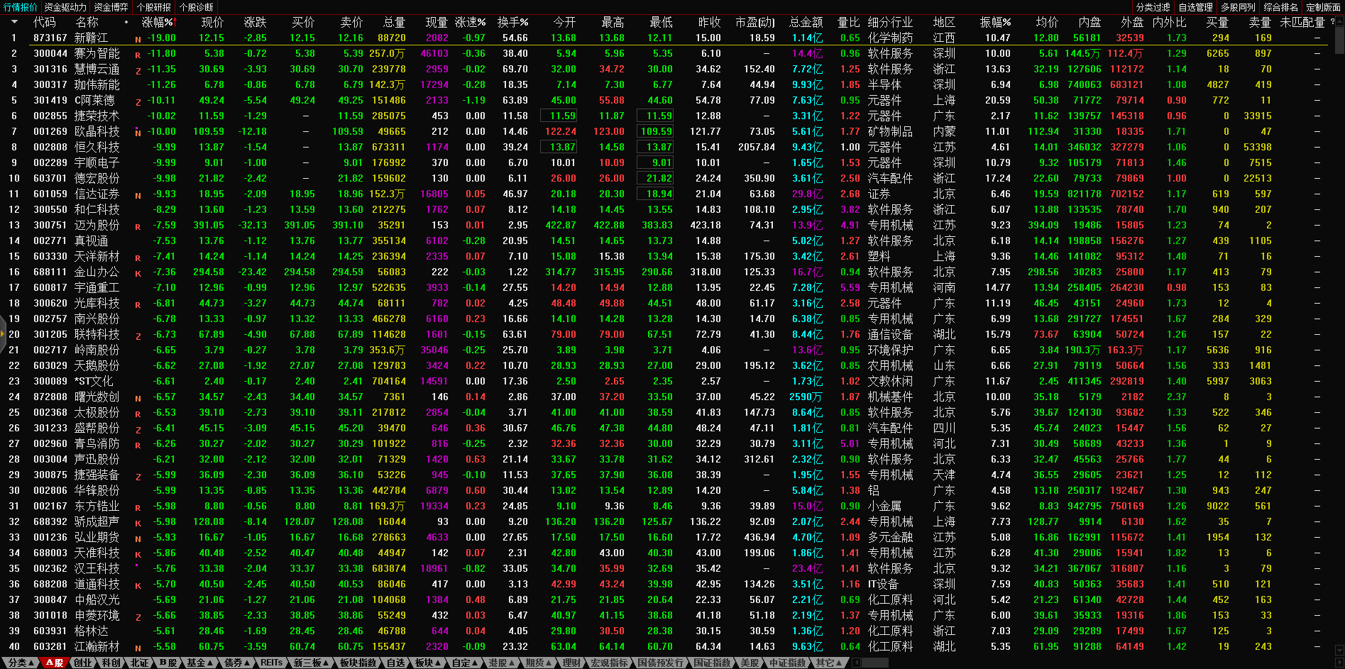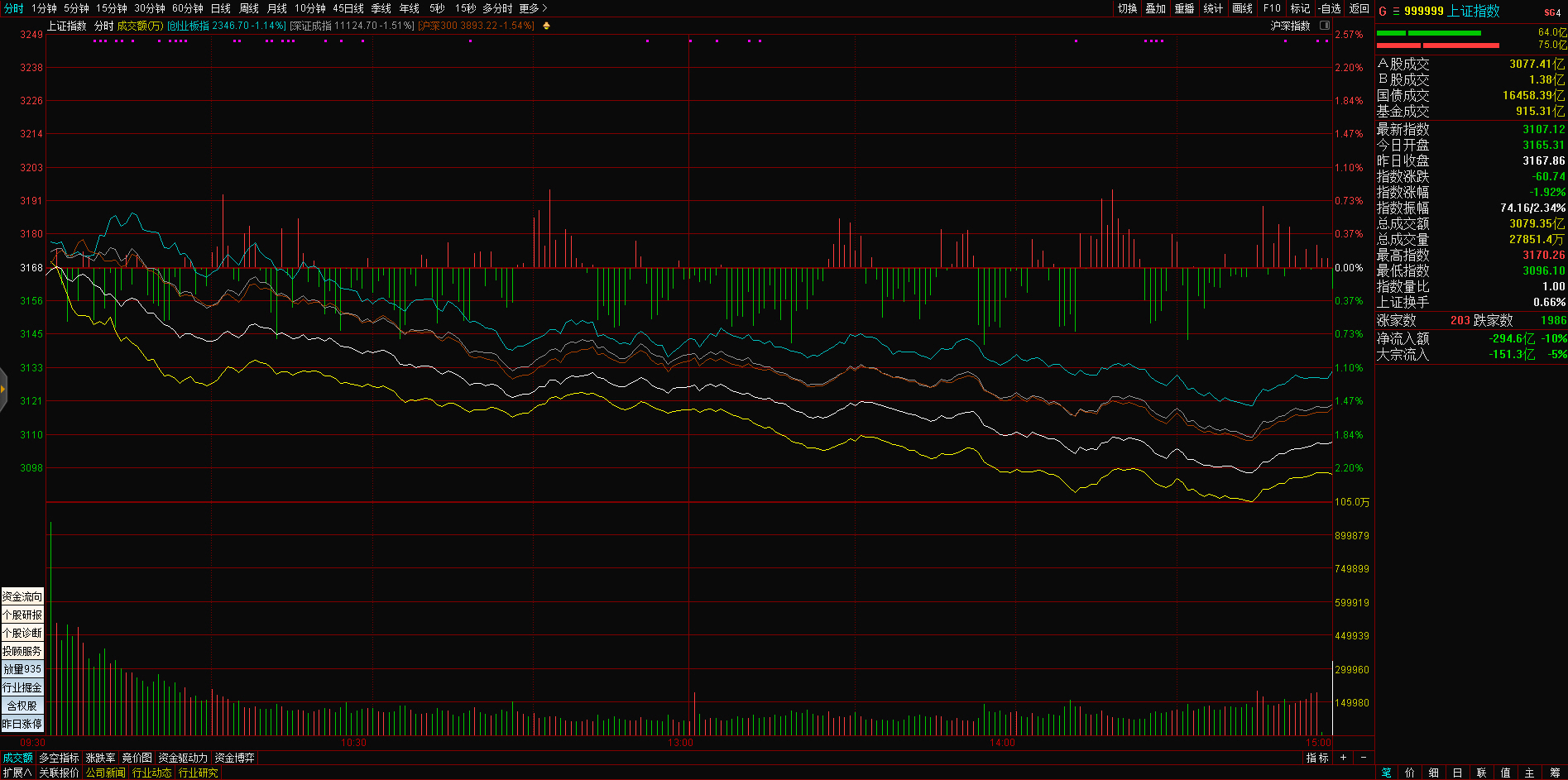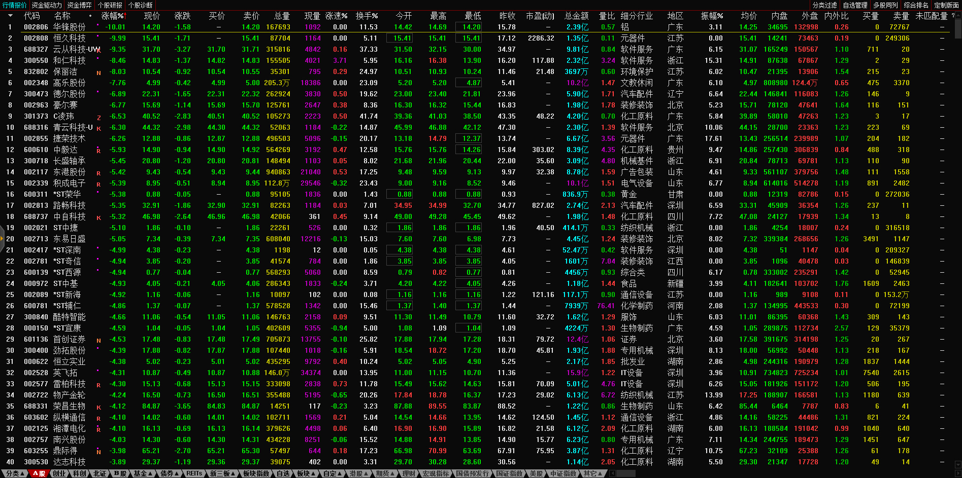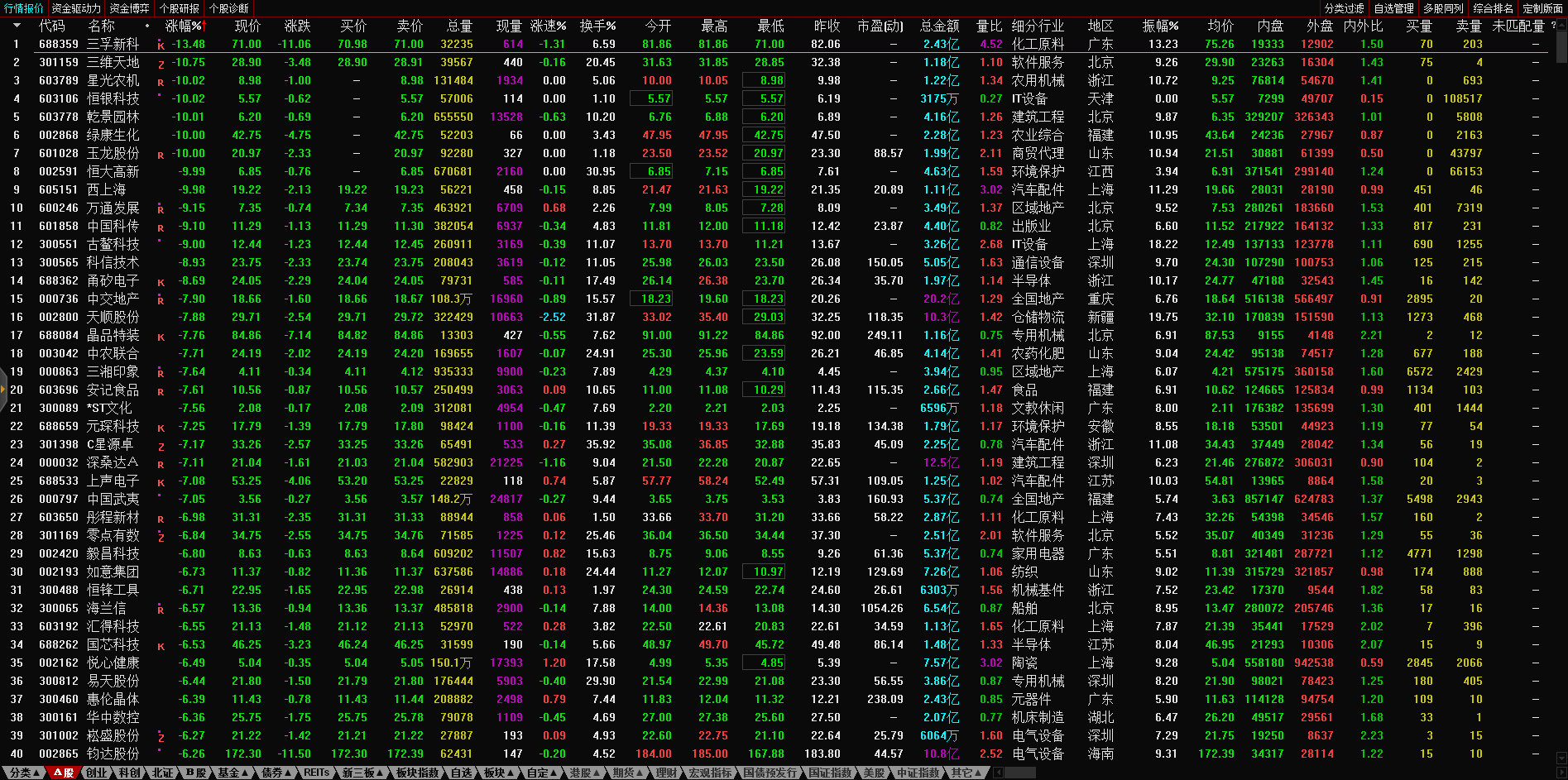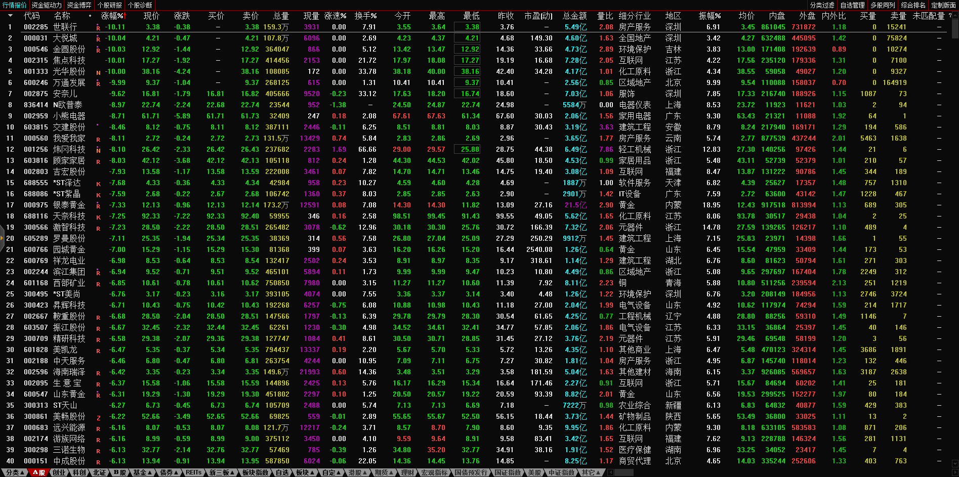 11:07 三大股指均跌超1%,汽车产业链、消费、地产、证券跌幅居前,军工板块逆市走强,超4000只个股下跌。