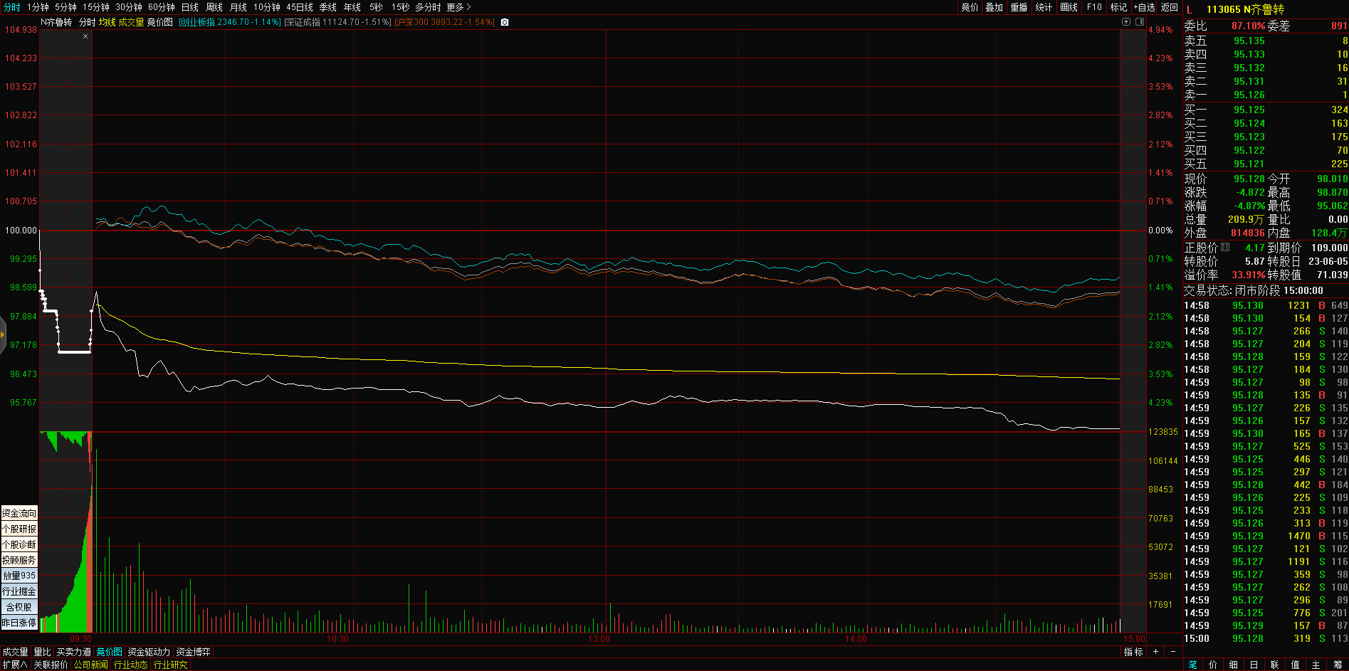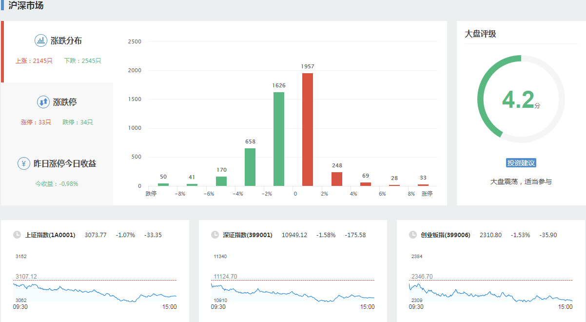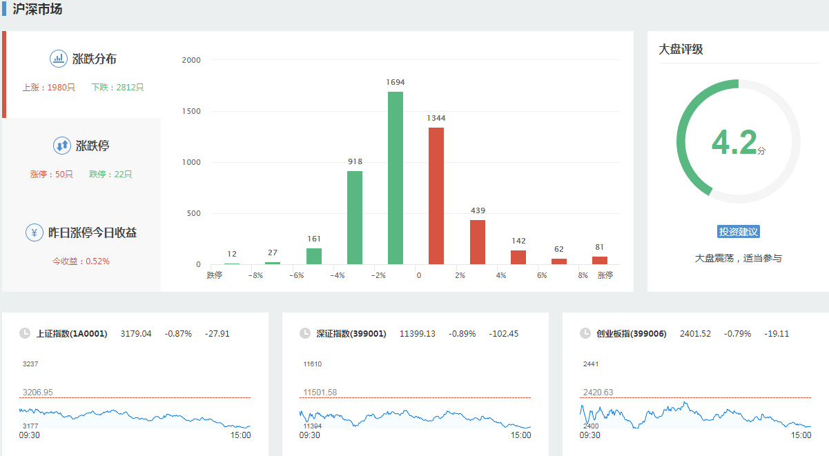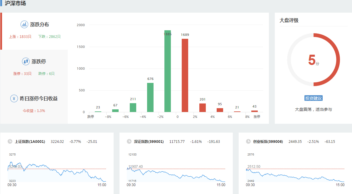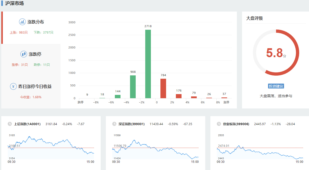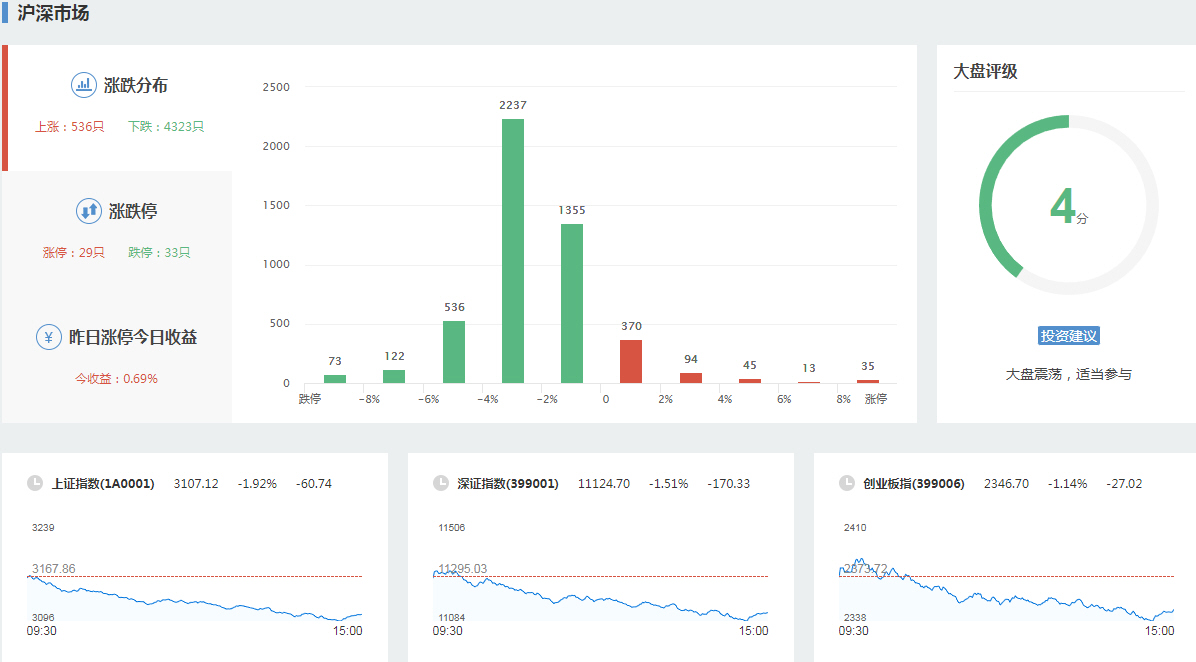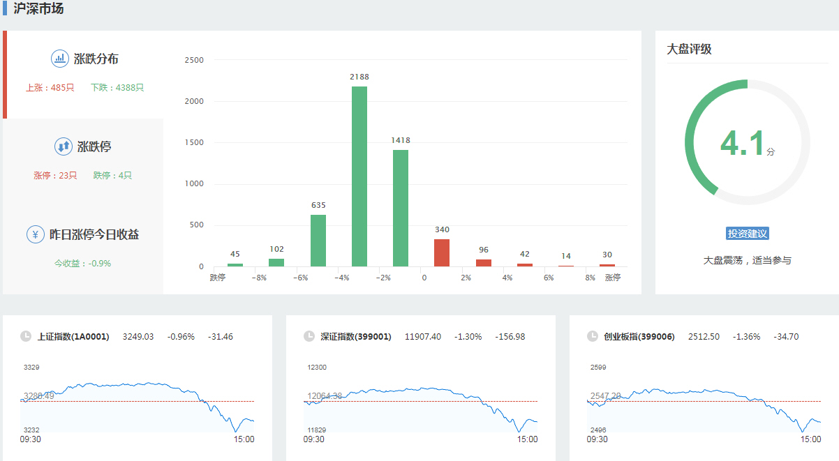 11:07 三大股指均跌超1%,汽车产业链、消费、地产、证券跌幅居前,军工板块逆市走强,超4000只个股下跌。