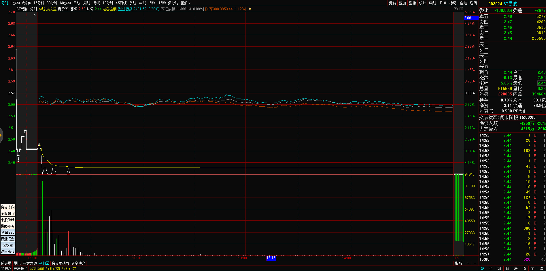 10:18 白酒股下挫,口子窖(603589)跌近5%,泸州老窖(000568)、舍得酒业(600702)、顺鑫农业(000860)、山西汾酒(600809)等跌超2%。