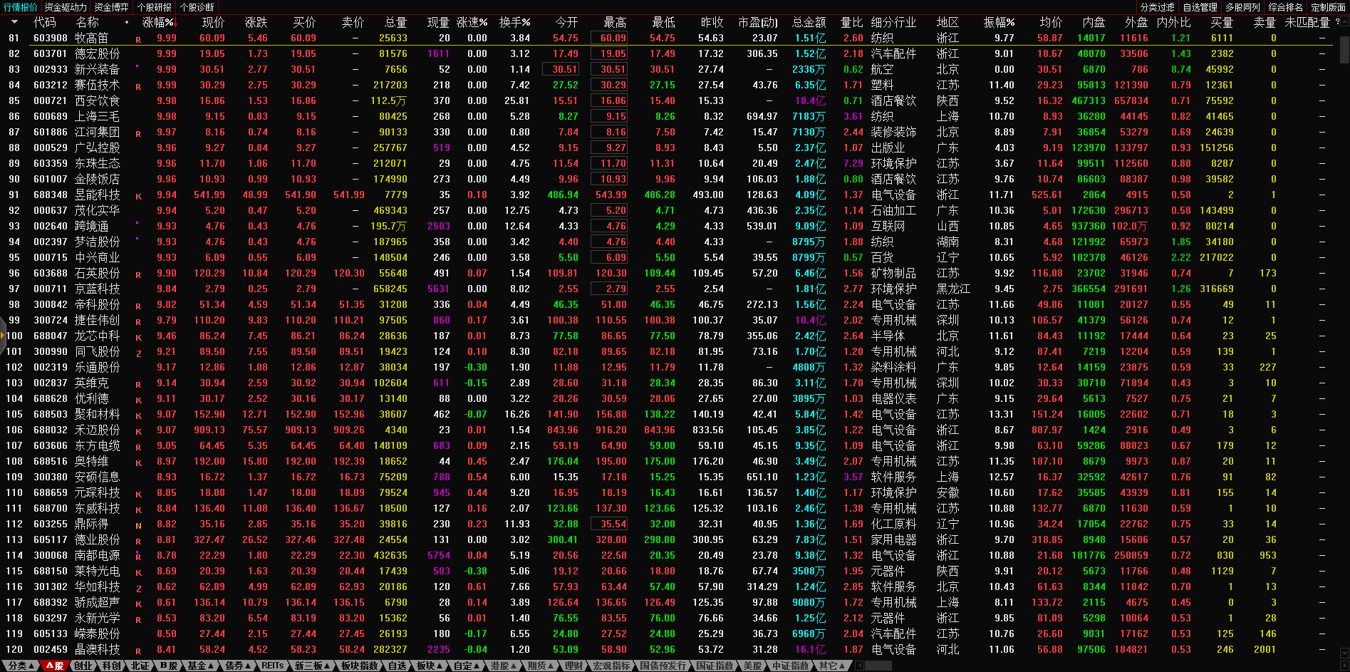 14:17 服装家纺板块拉升走强,牧高笛、九牧王相继涨停,锦泓集团(603518)涨超6%,太平鸟(603877)、真爱美家(003041)、探路者(300005)等跟涨。