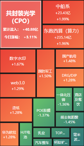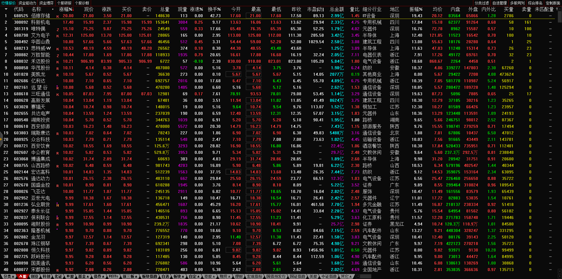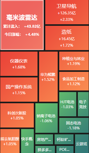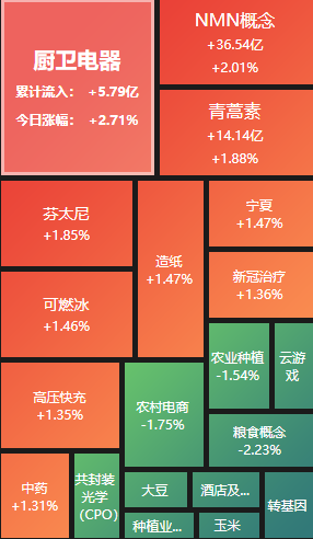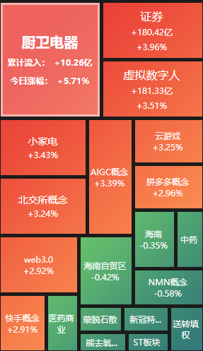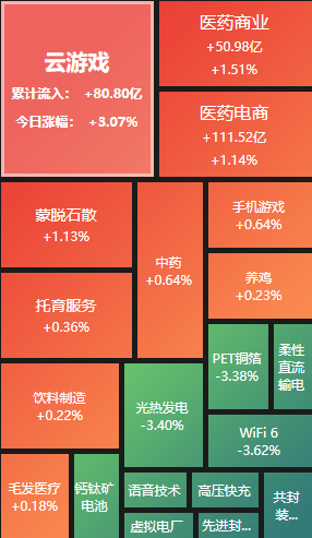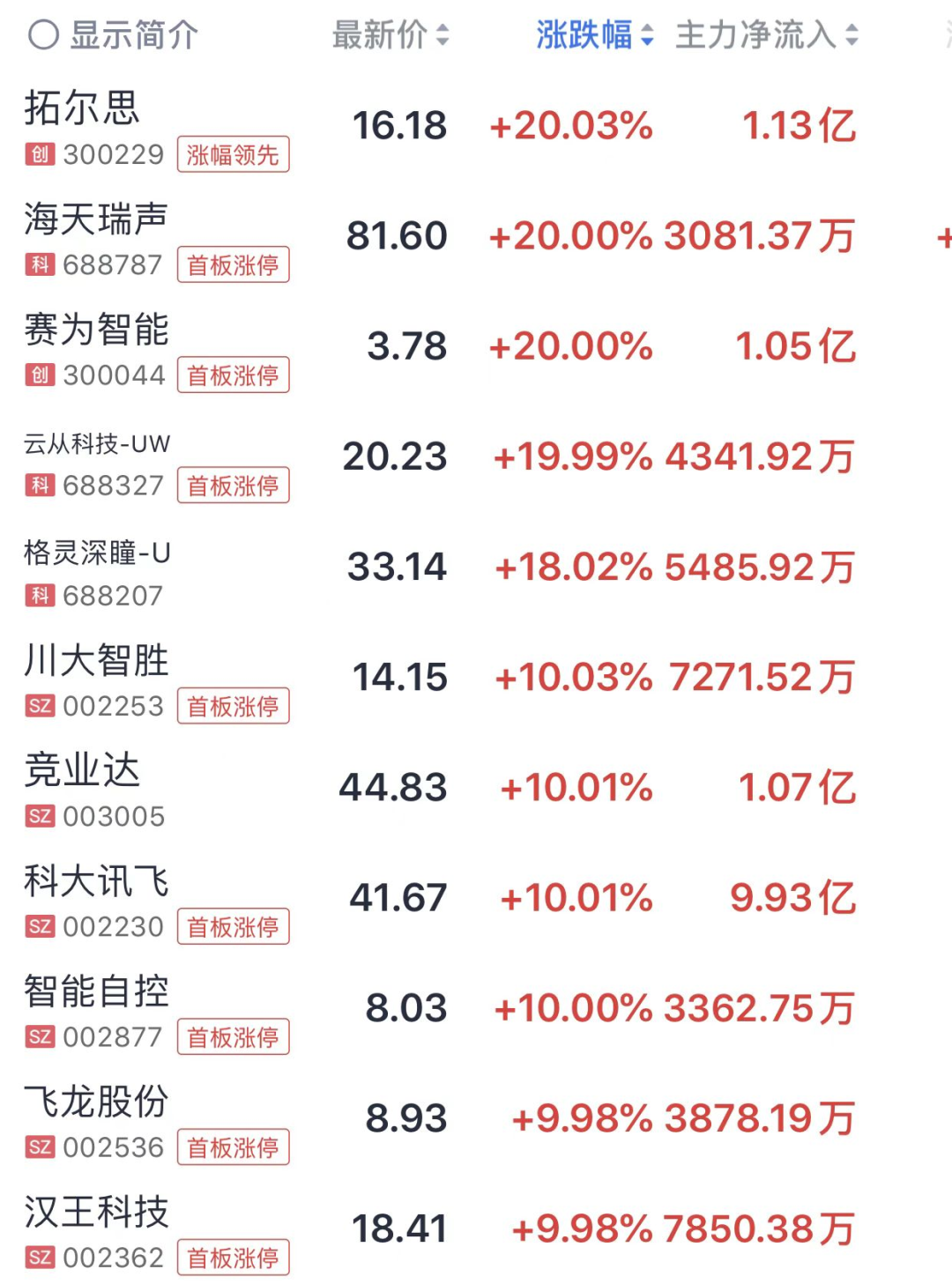 盘面上,午后算力板块拉升,美利云(000815)一度直线封板,中科曙光(603019)触及涨停。服装家纺板块拉升走强,牧高笛(603908)、九牧王(601566)相继涨停。