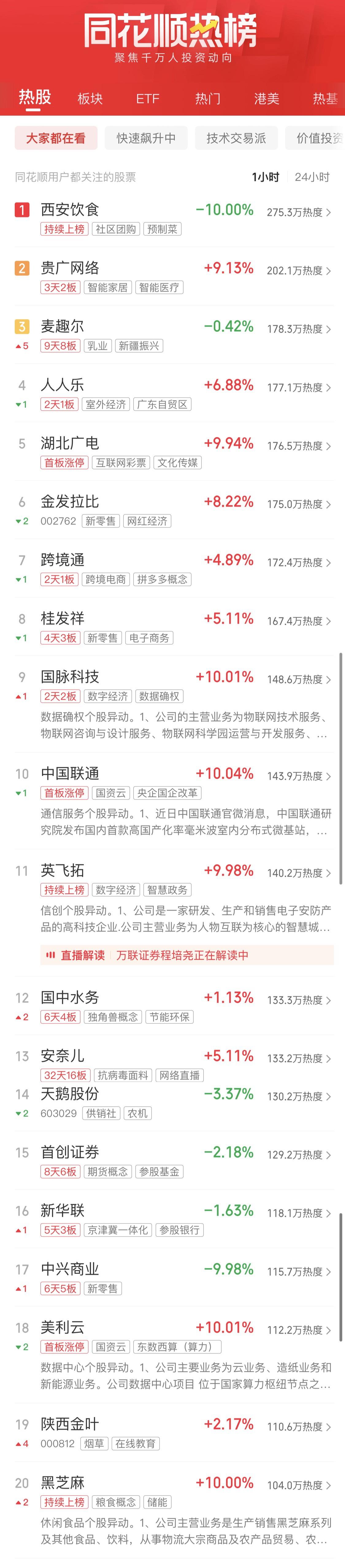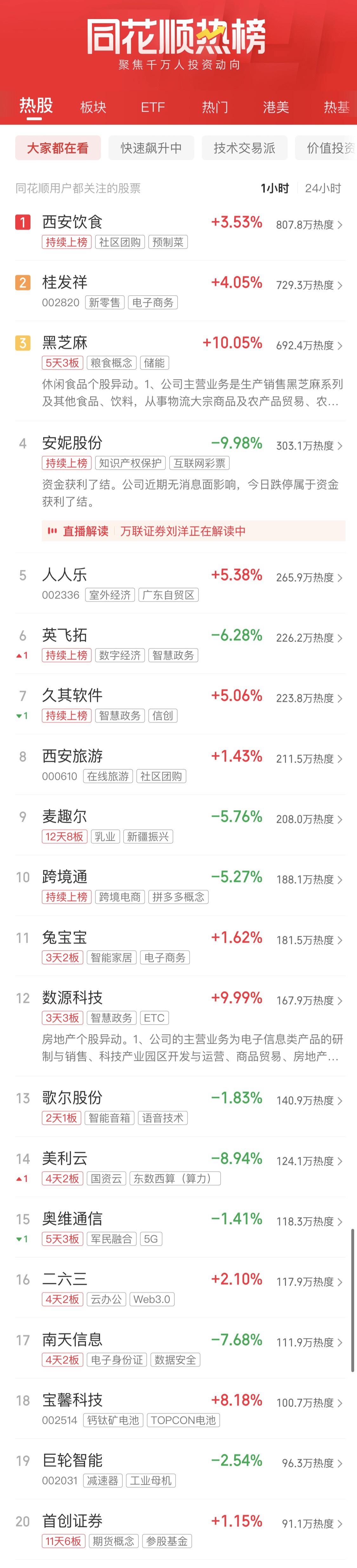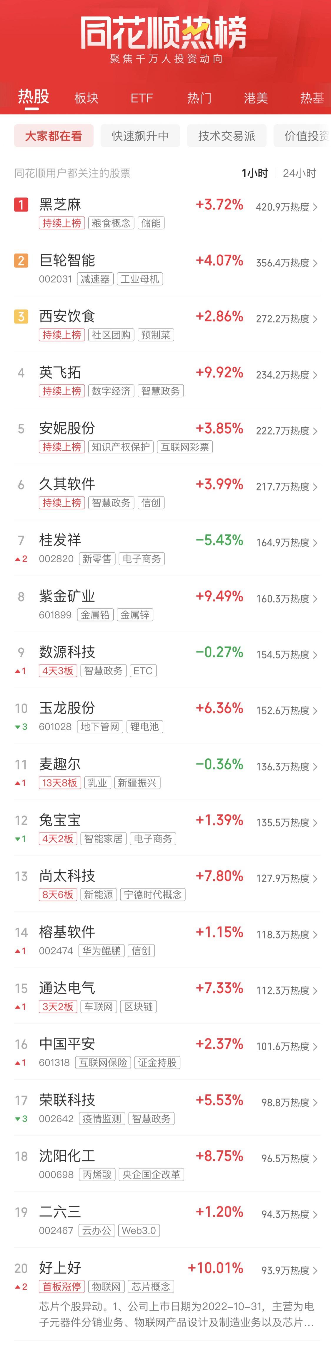 盘面上,午后算力板块拉升,美利云(000815)一度直线封板,中科曙光(603019)触及涨停。服装家纺板块拉升走强,牧高笛(603908)、九牧王(601566)相继涨停。