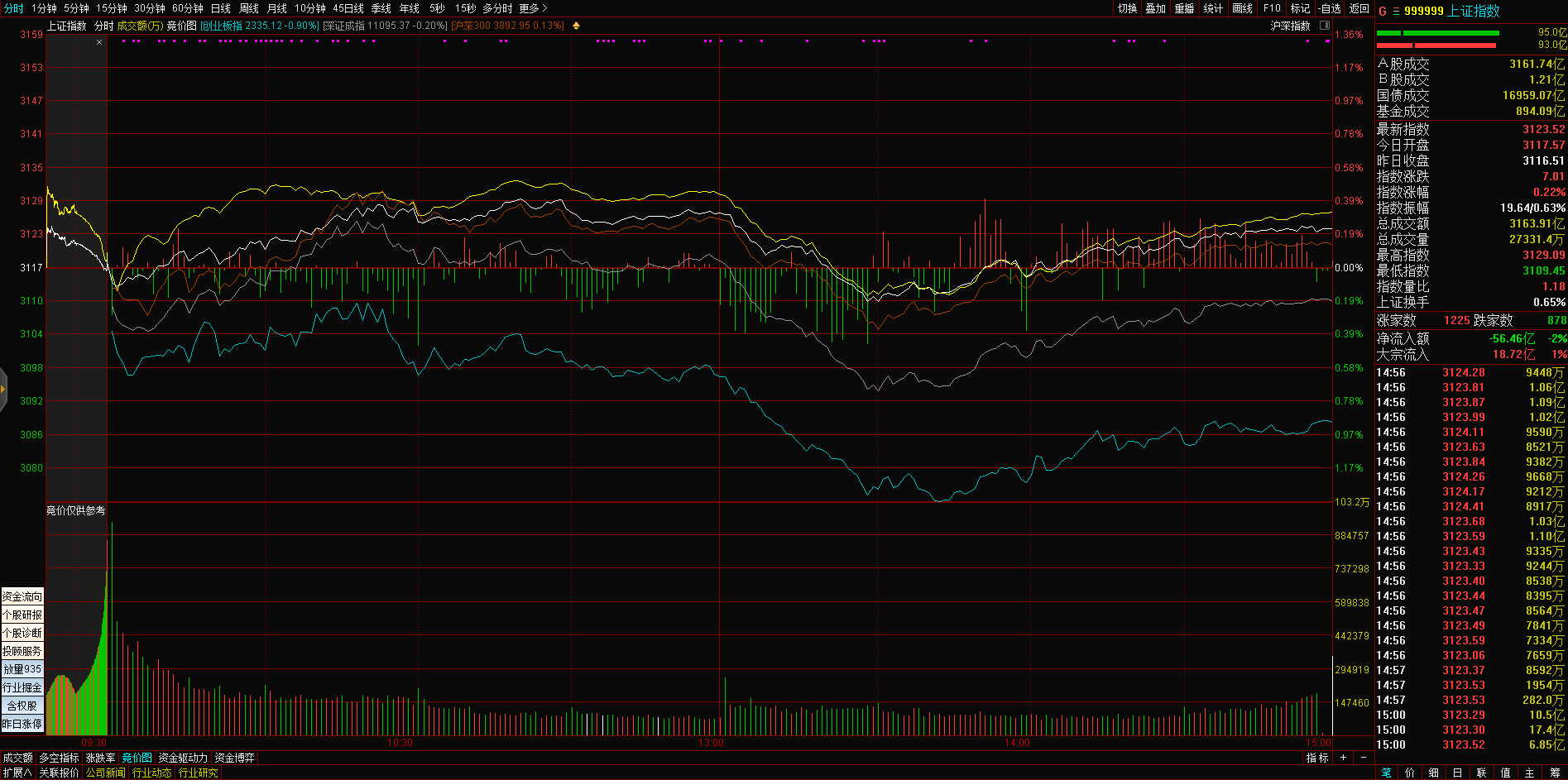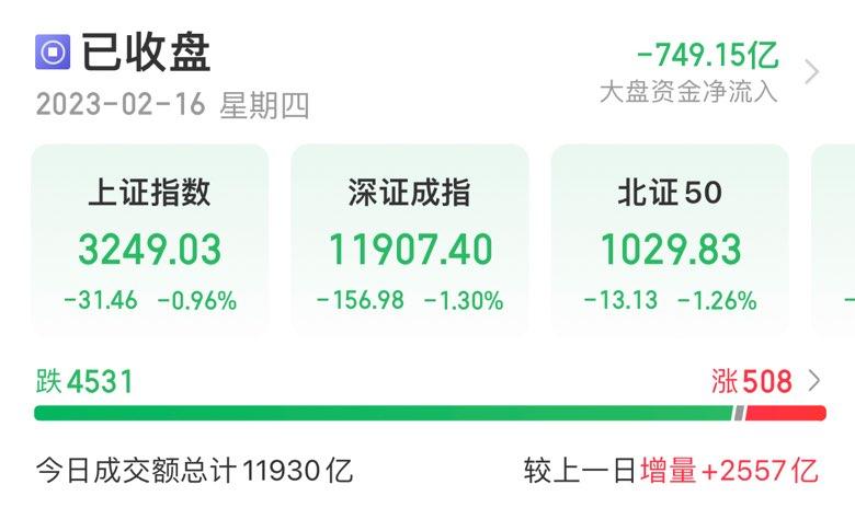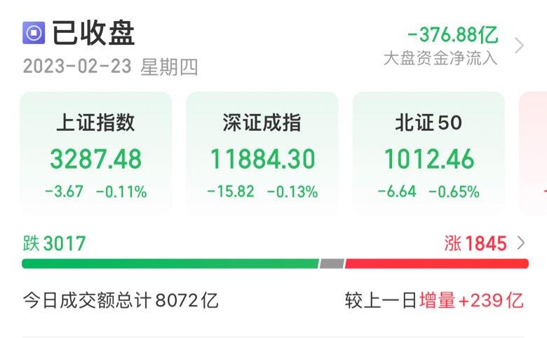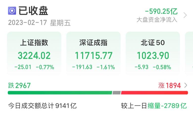 导语: 指数午后低位震荡,截至收盘,沪指跌0.62%,深成指跌0.81%,创业板指跌1.16%,北证50跌0.52%。算力、军工领涨,汽车产业链、消费、证券领跌。两市近3100只个股下跌,全天成交额仅7258亿元,较昨日缩量815亿元,北向资金净卖出51亿元。盘面上,午后算力板块拉升,美利云一度直线封板,中科曙光触及涨停。服装家纺板块拉升走强,牧高笛、九牧王相继涨停。