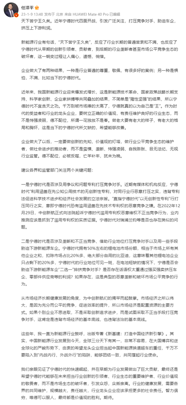 继特斯拉掀起新能源汽车行业的“价格战”之后,宁德时代(300750)也要打一场动力电池领域的“价格战”?