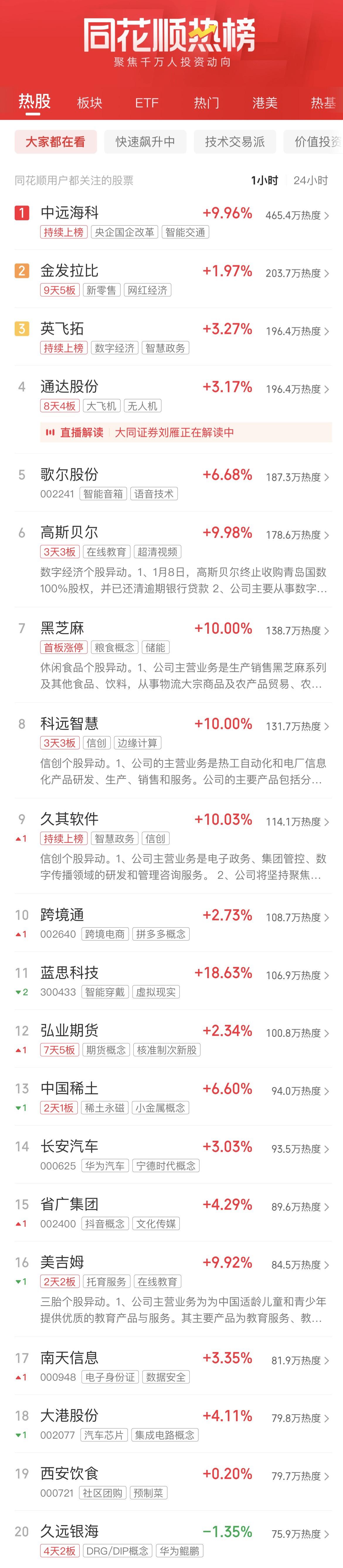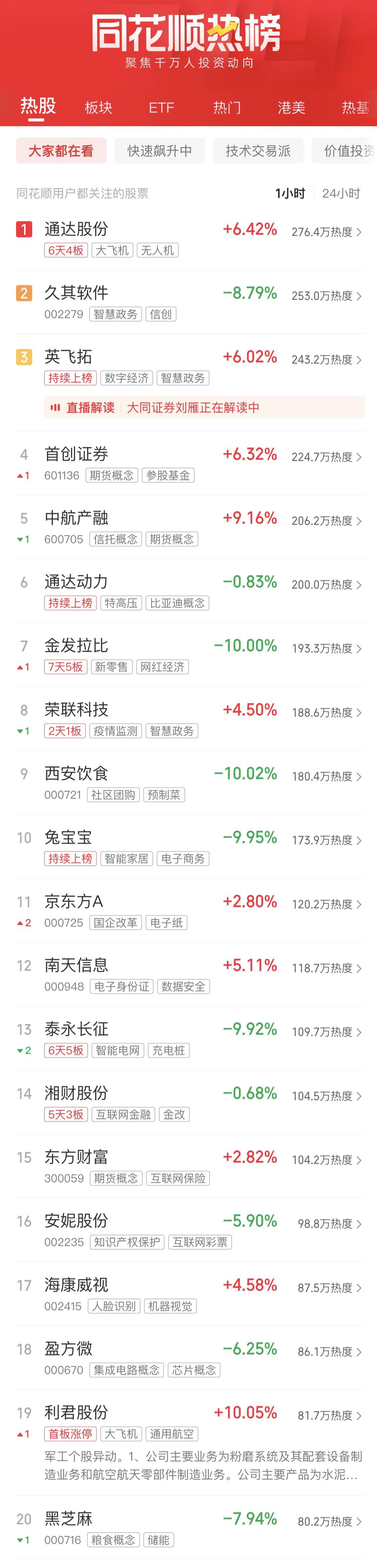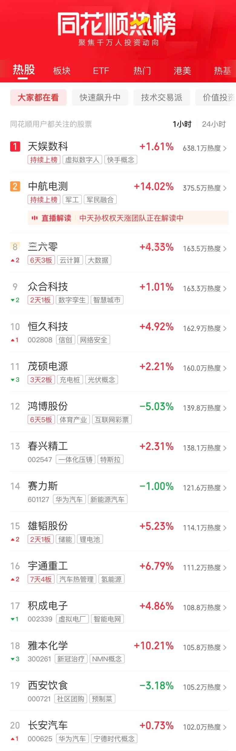 09:33 国防军工板块异动拉升,航宇科技涨超6%,菲利华(300395)、亚光科技(300123)、天微电子、钢研高纳(300034)等跟涨。
