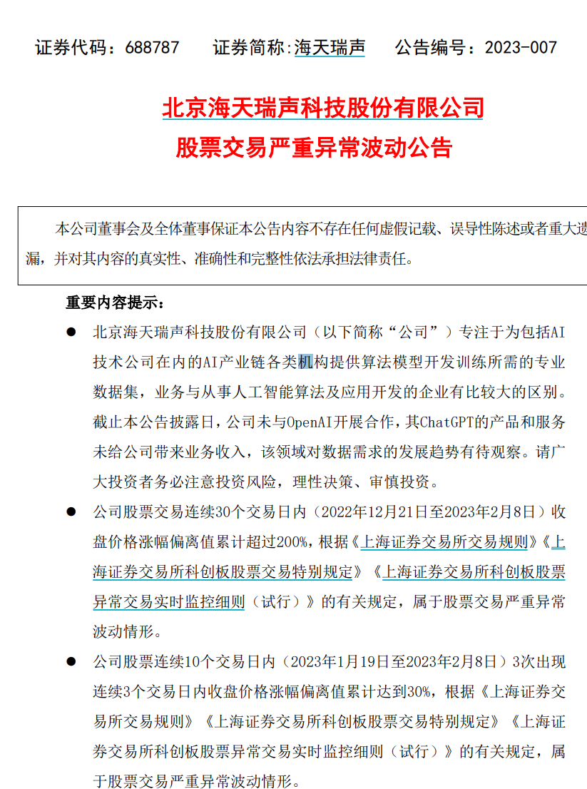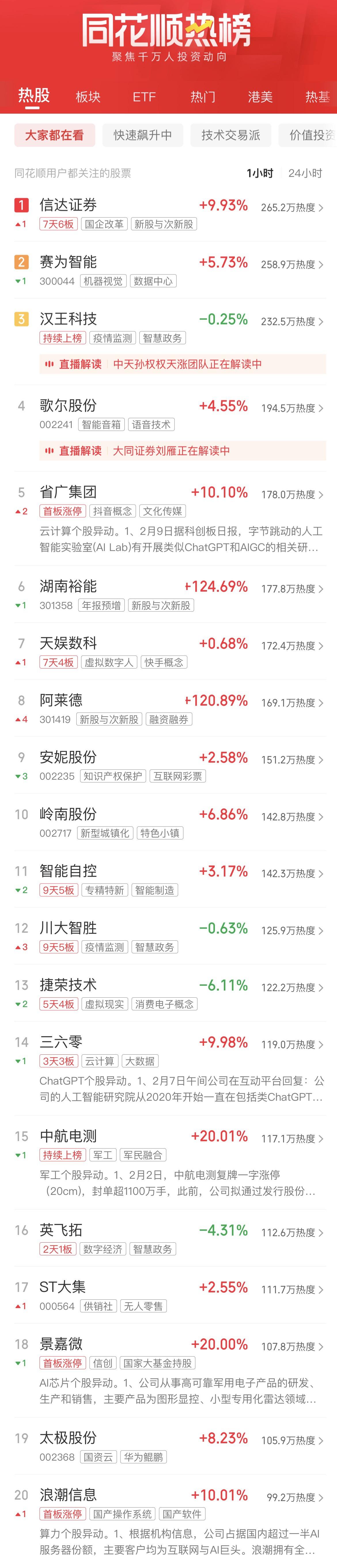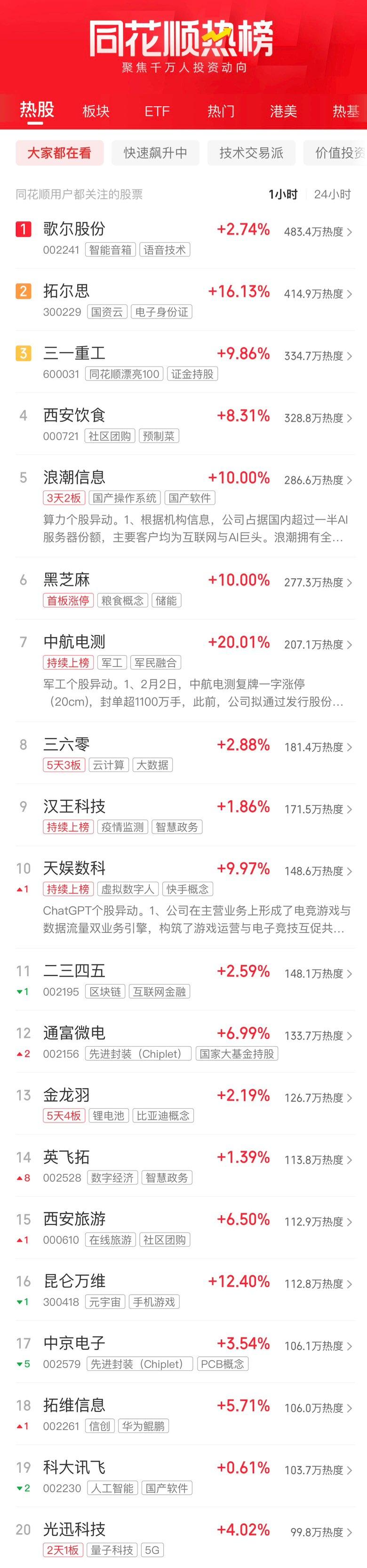 13:04 ChatGPT概念板块午后拉升,三六零(601360)涨近5%,拓尔思、多伦科技(603528)、海天瑞声、鸿博股份(002229)等跟涨。