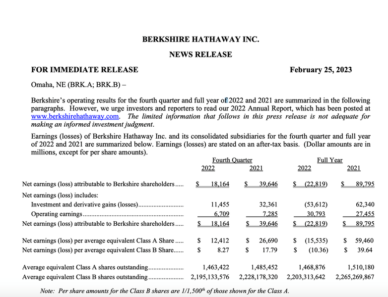 伯克希尔-哈撒韦:2022年第四季度净利润181.64亿美元 预期79.61亿美元