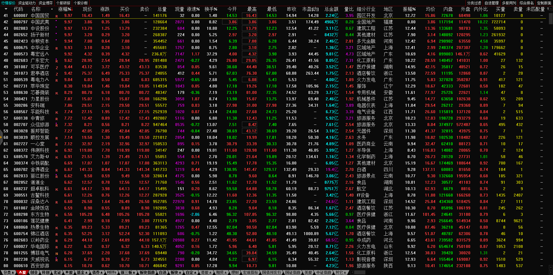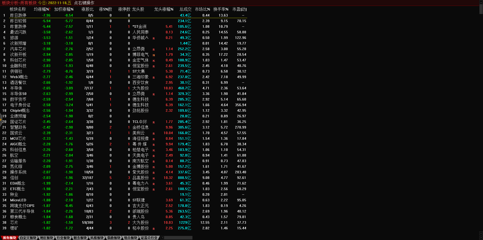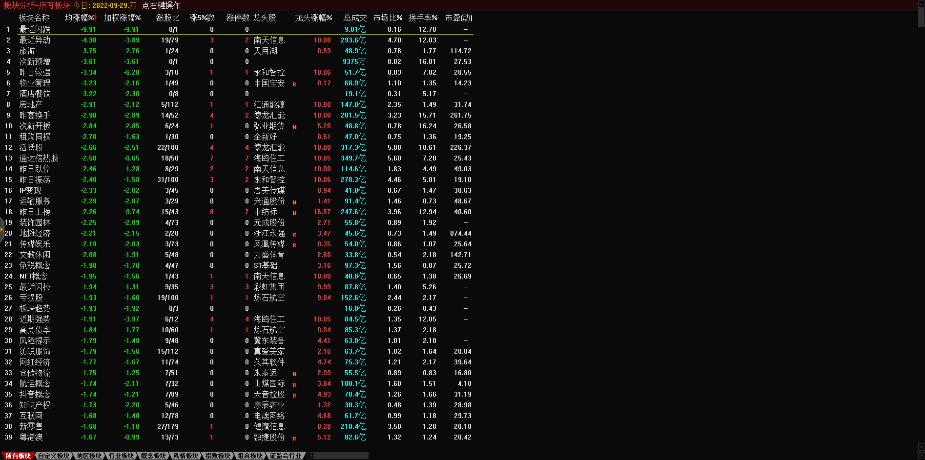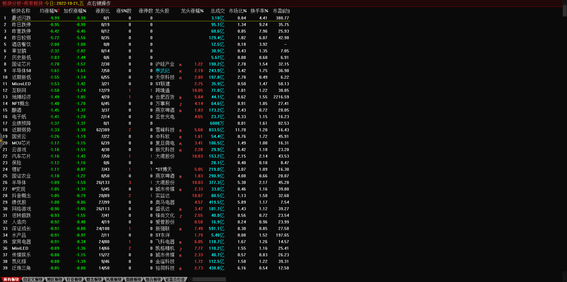 13:17 房地产开发板块持续走低,深振业A午后封跌停板,深深房A此前跌停,中国武夷(000797)、沙河股份(000014)、南国置业(002305)、南山控股(002314)等跌超6%。