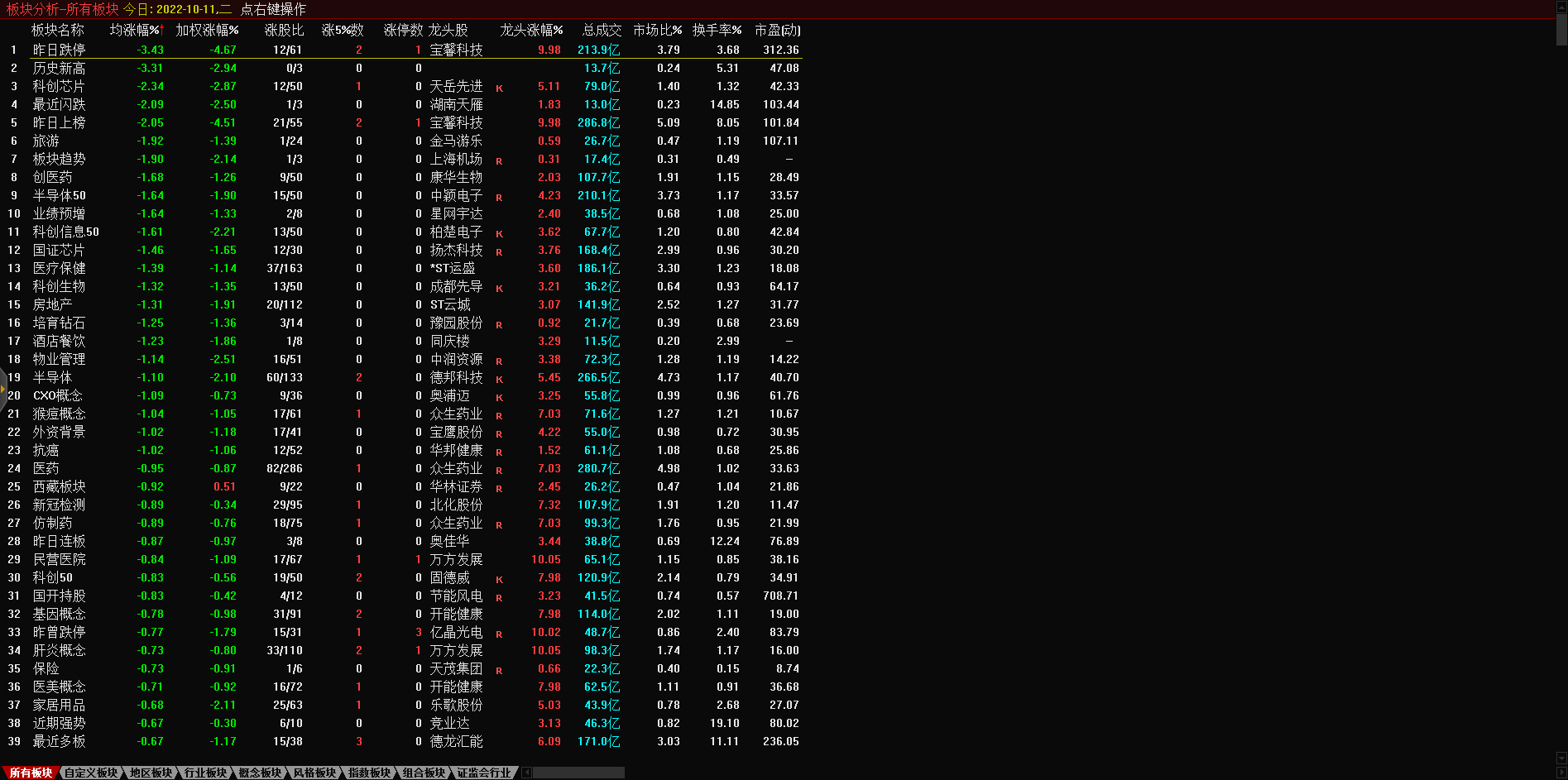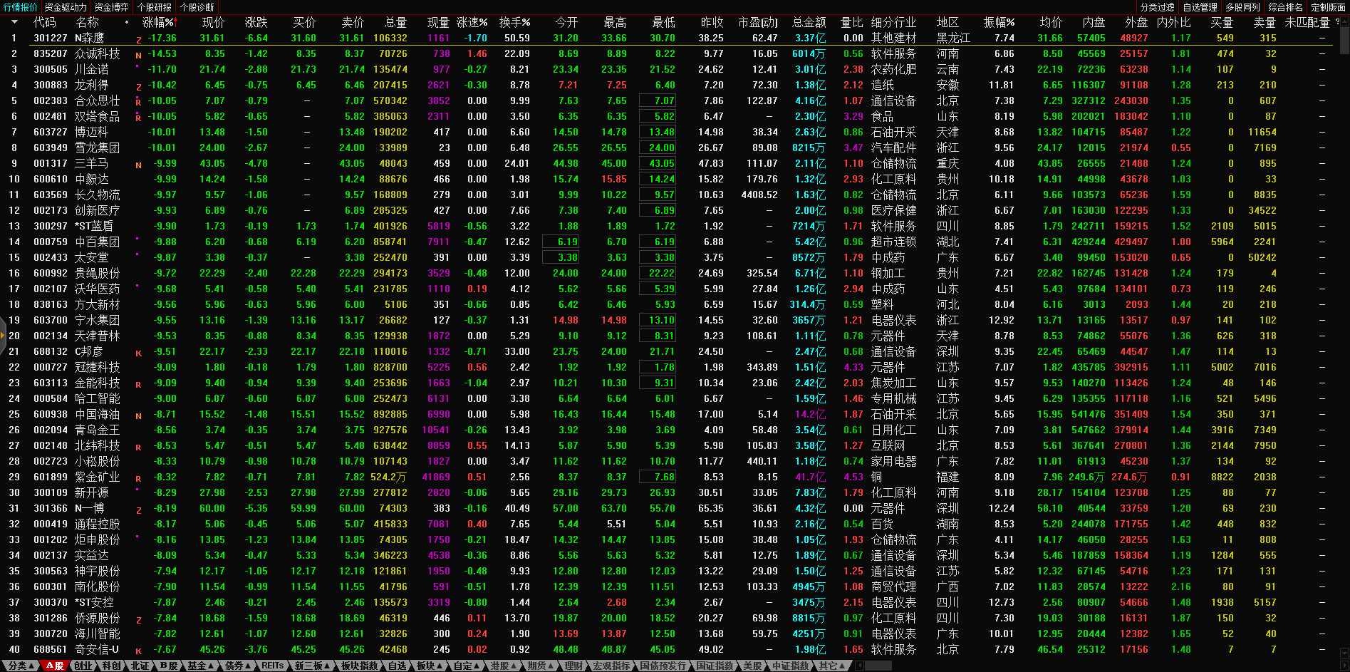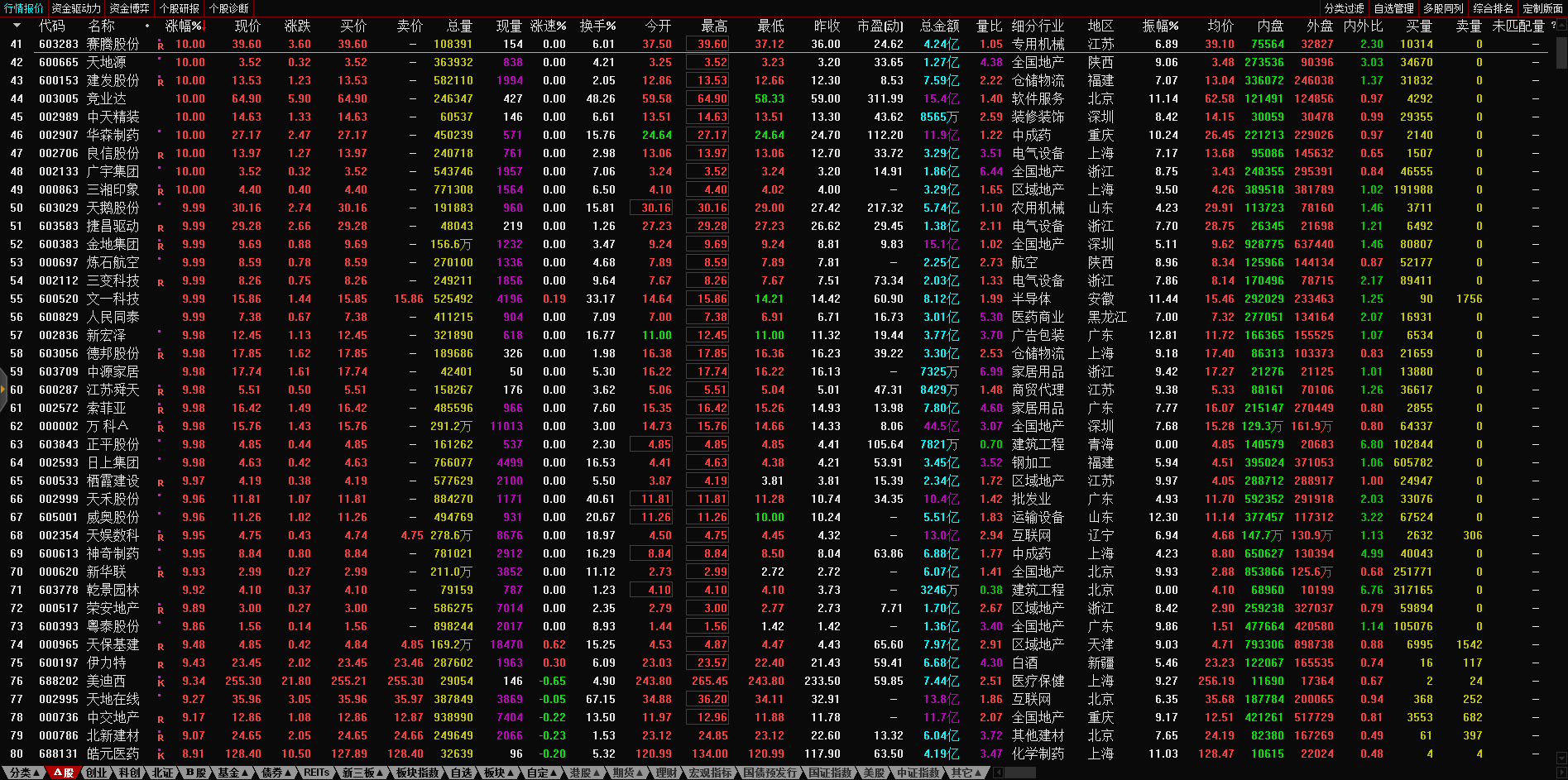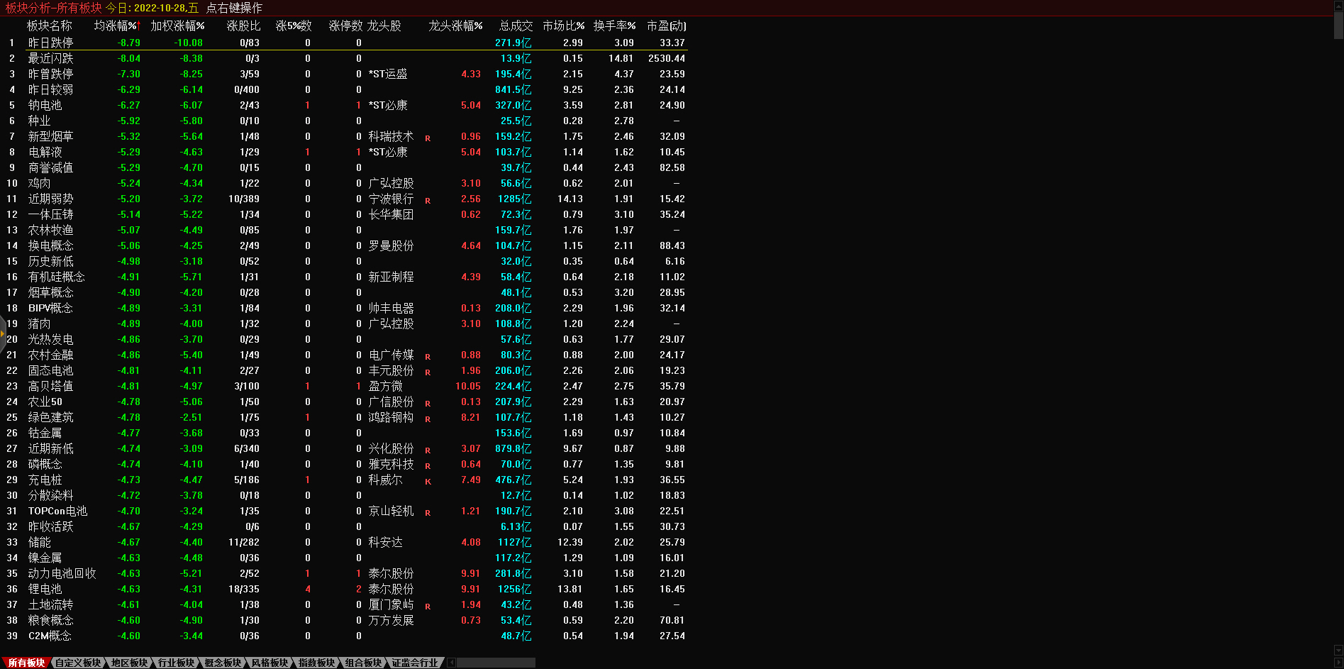 13:17 房地产开发板块持续走低,深振业A午后封跌停板,深深房A此前跌停,中国武夷(000797)、沙河股份(000014)、南国置业(002305)、南山控股(002314)等跌超6%。