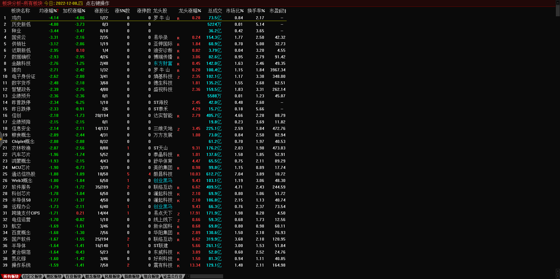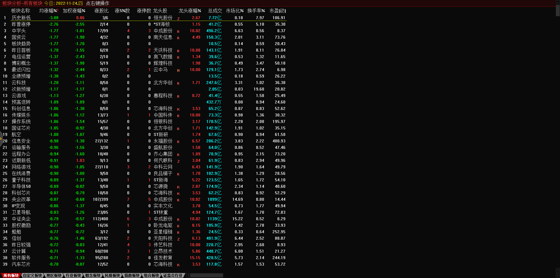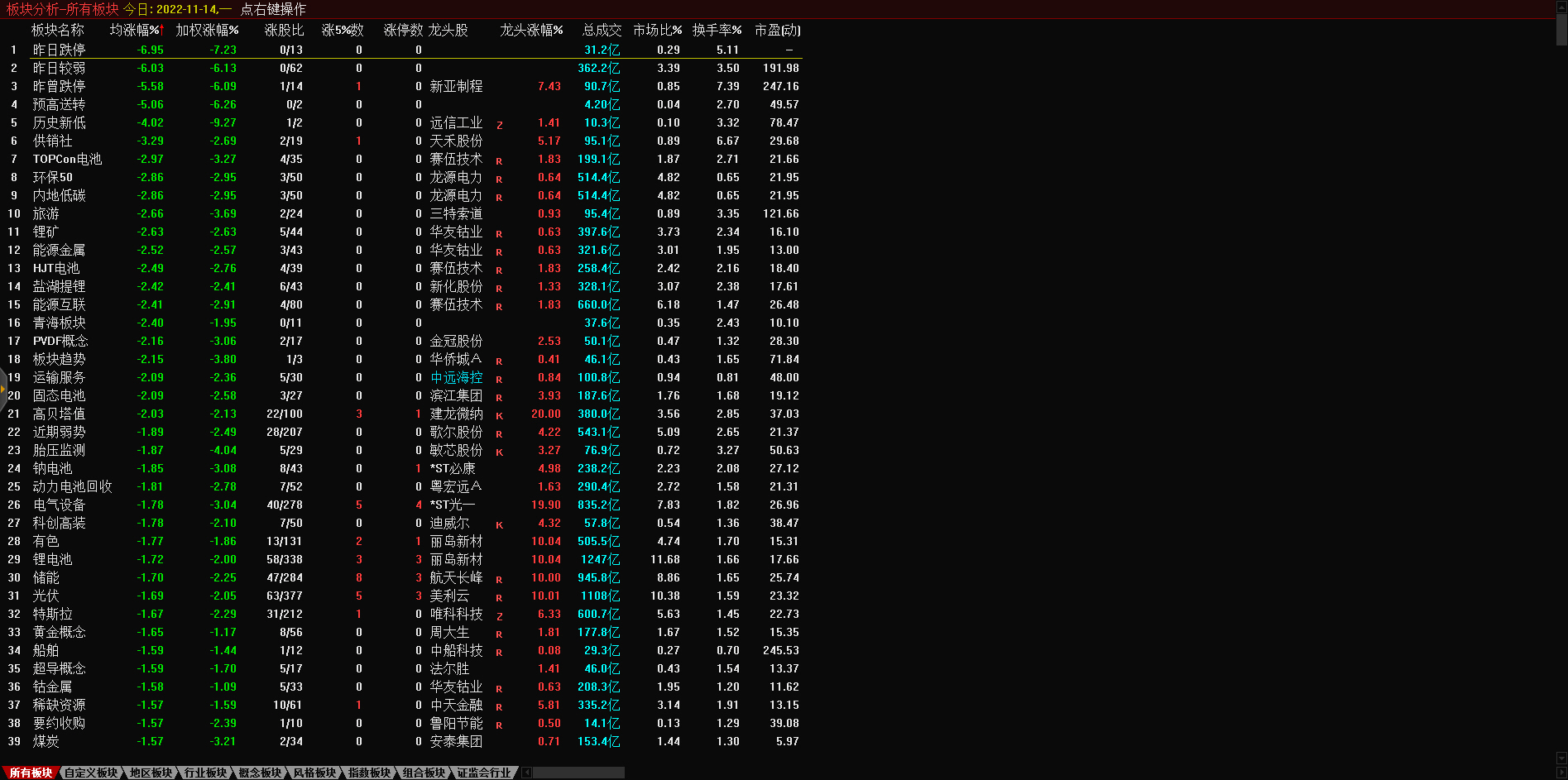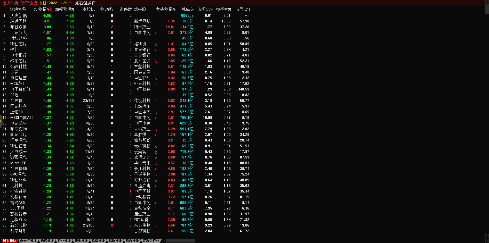 13:17 房地产开发板块持续走低,深振业A午后封跌停板,深深房A此前跌停,中国武夷(000797)、沙河股份(000014)、南国置业(002305)、南山控股(002314)等跌超6%。