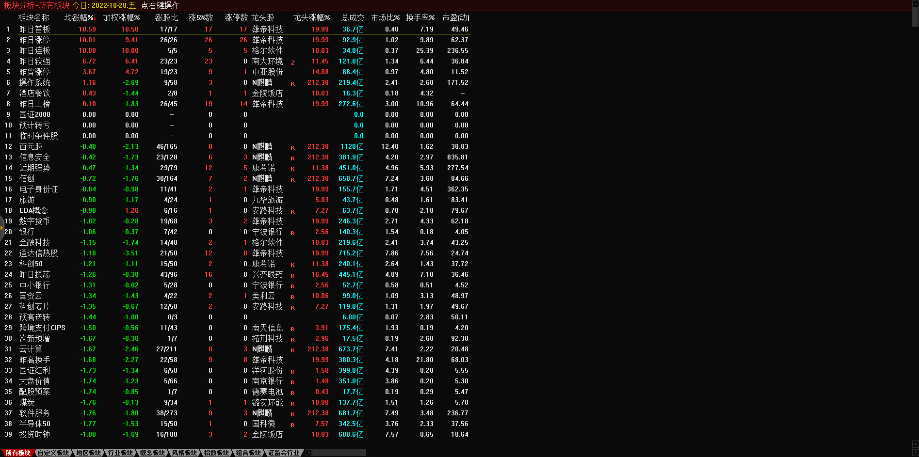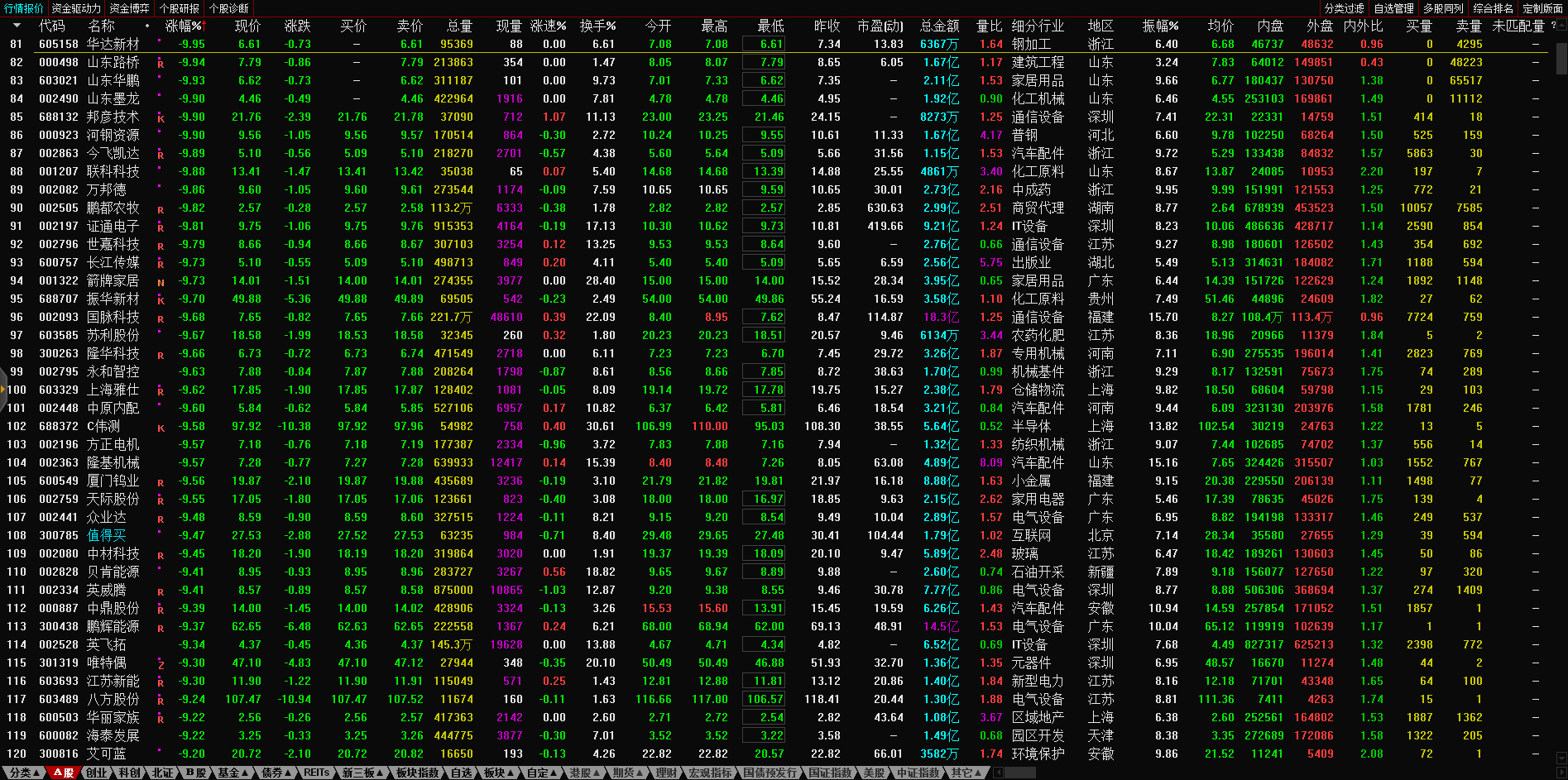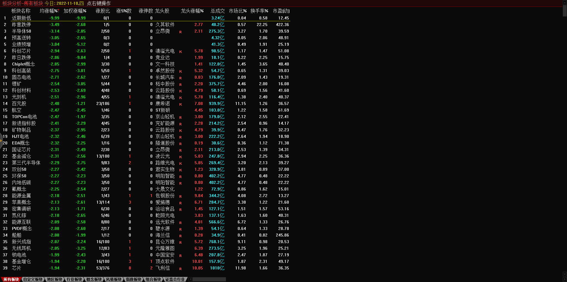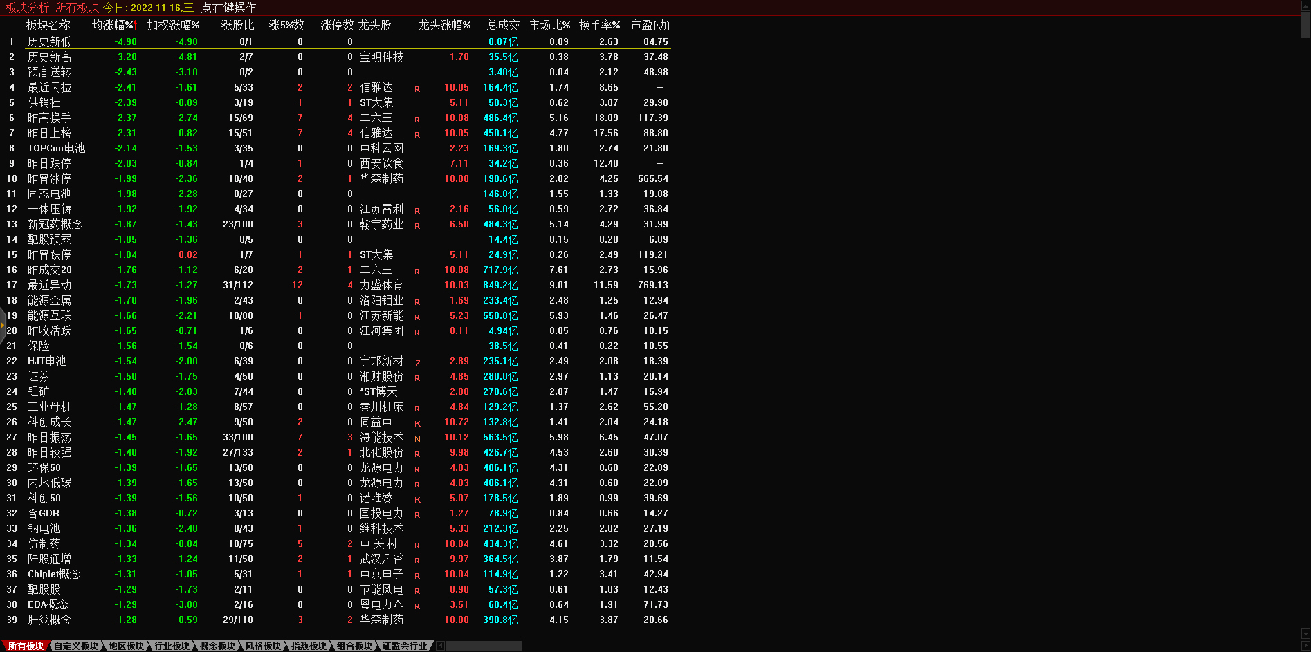 13:17 房地产开发板块持续走低,深振业A午后封跌停板,深深房A此前跌停,中国武夷(000797)、沙河股份(000014)、南国置业(002305)、南山控股(002314)等跌超6%。
