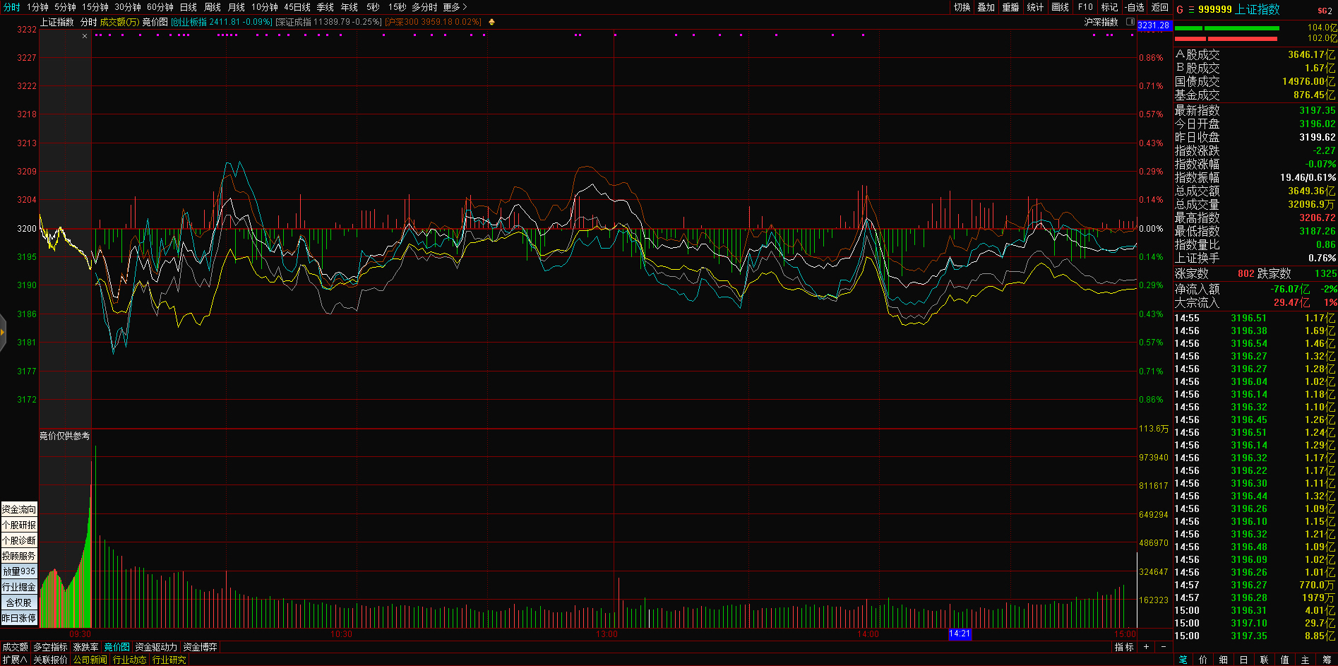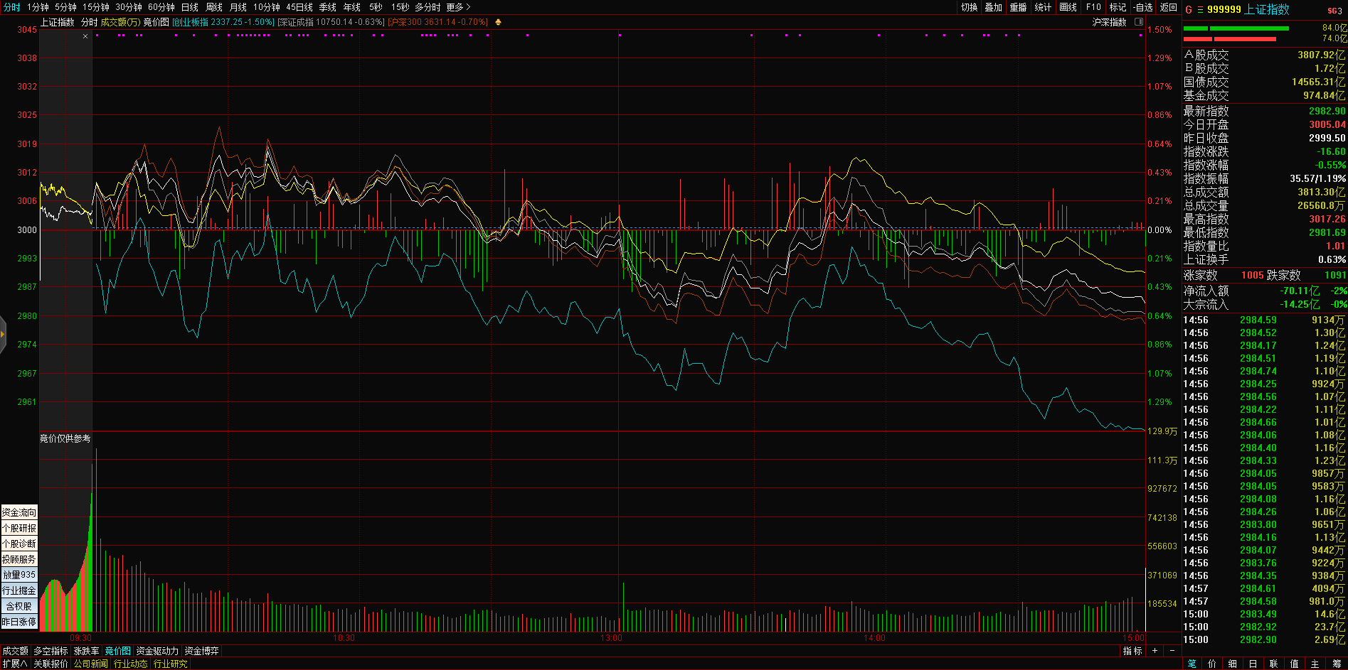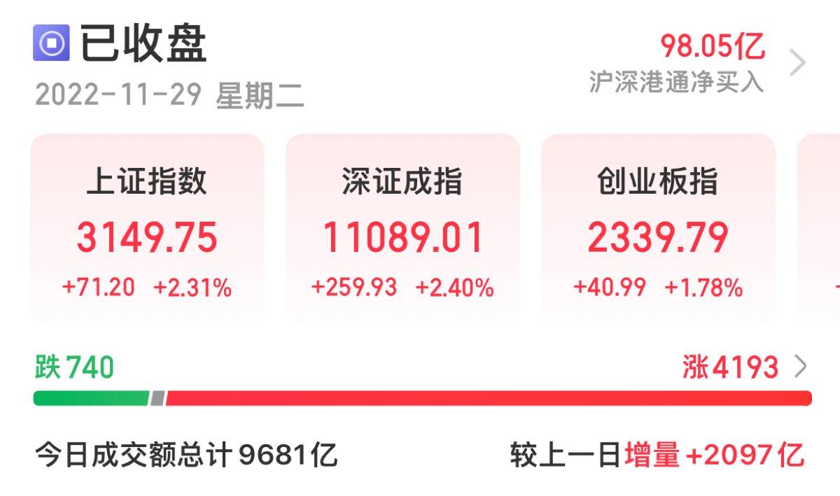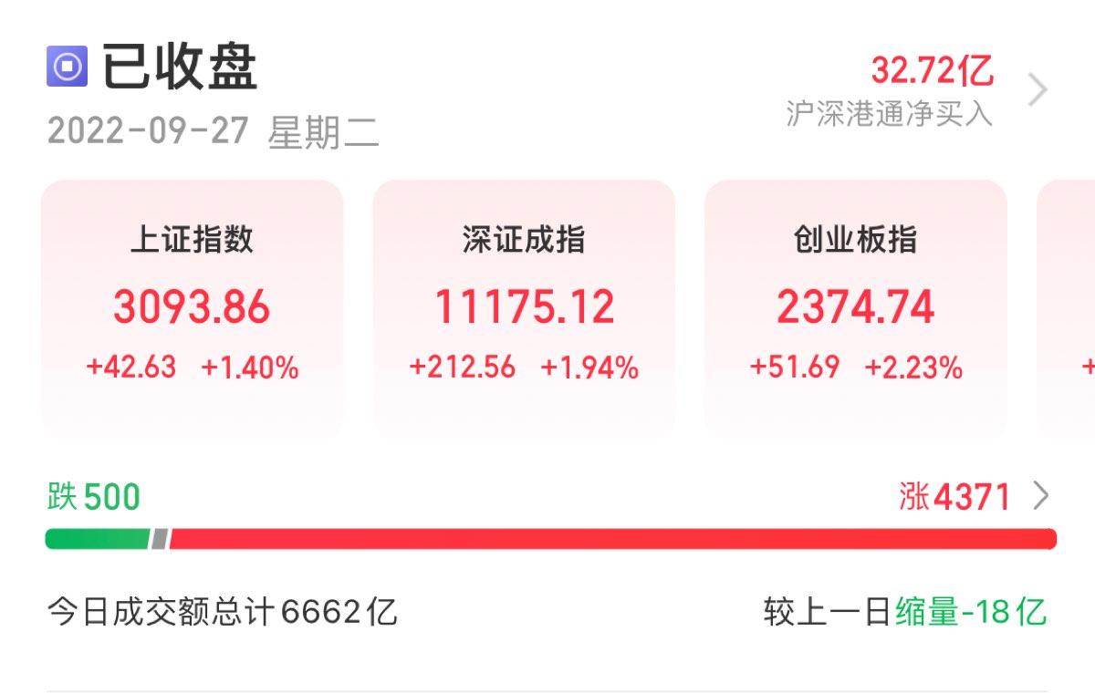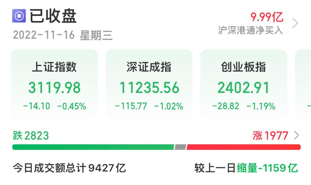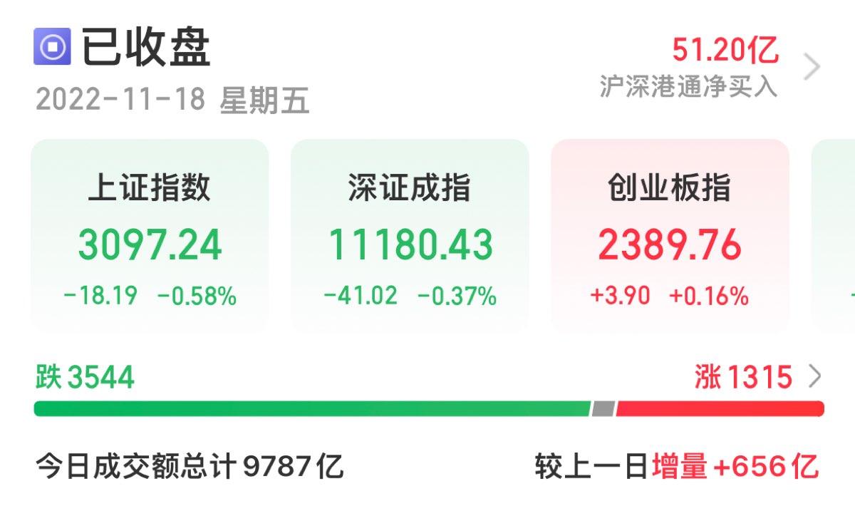 三大指数午后窄幅震荡,截至收盘,沪指涨0.02%,深成指涨0.67%,创业板指涨0.68%,沪深两市全天成交额9982亿元。两市超3200只个股下跌,北向资金全天净买入5.40亿元。