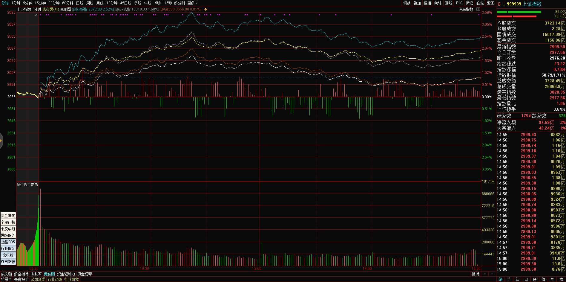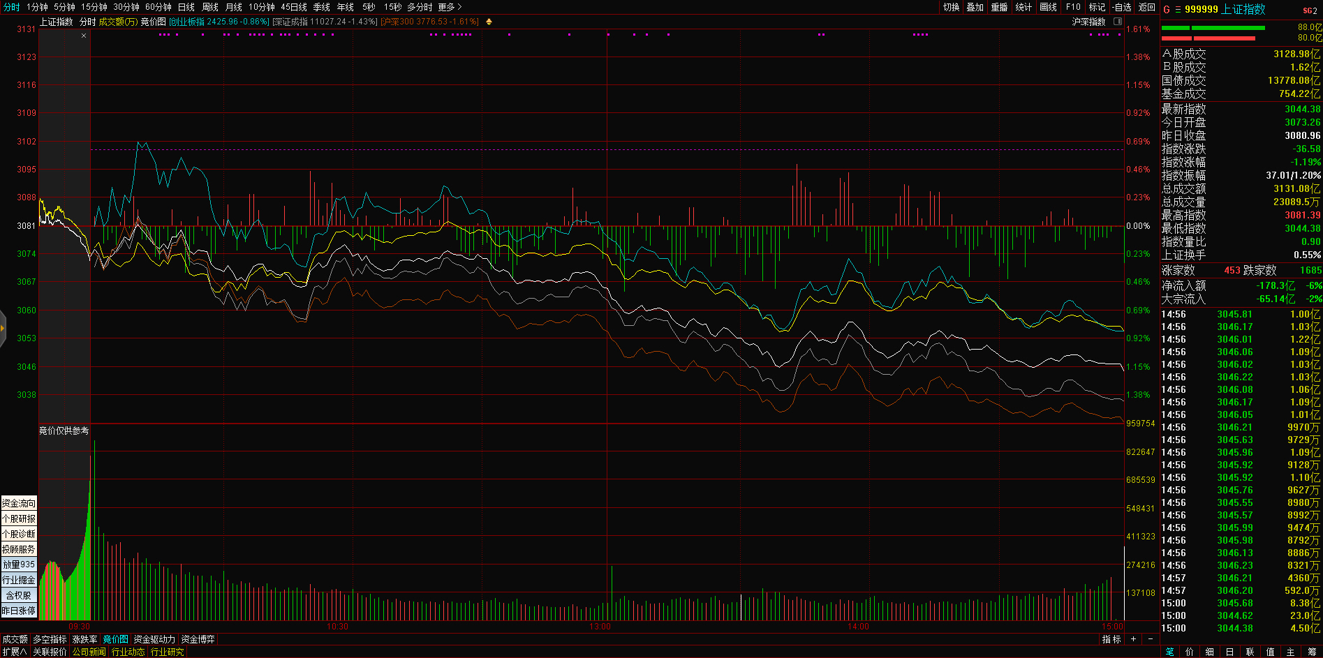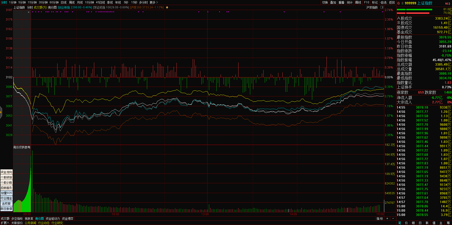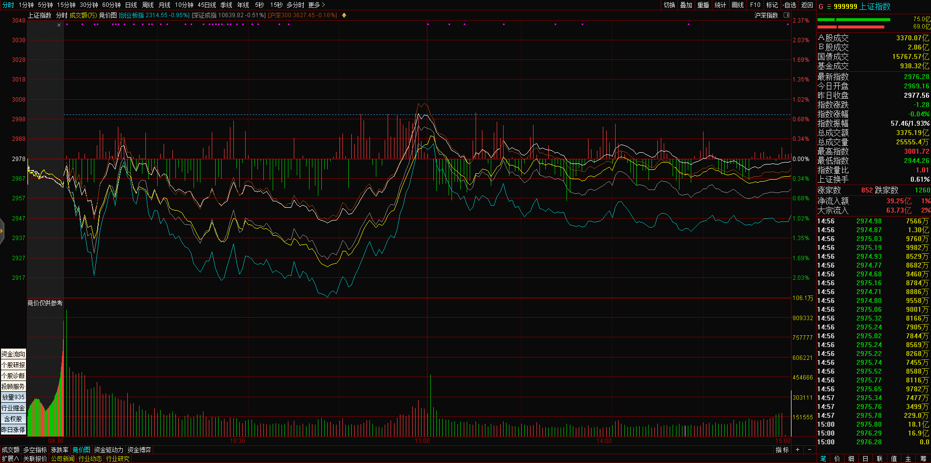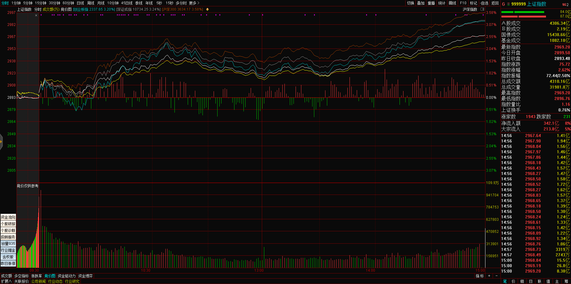 三大指数午后窄幅震荡,截至收盘,沪指涨0.02%,深成指涨0.67%,创业板指涨0.68%,沪深两市全天成交额9982亿元。两市超3200只个股下跌,北向资金全天净买入5.40亿元。