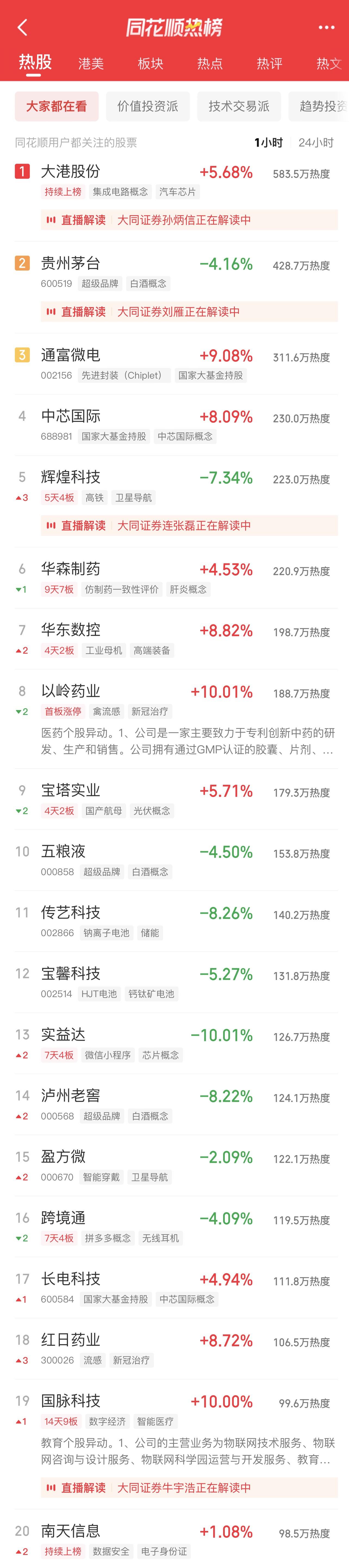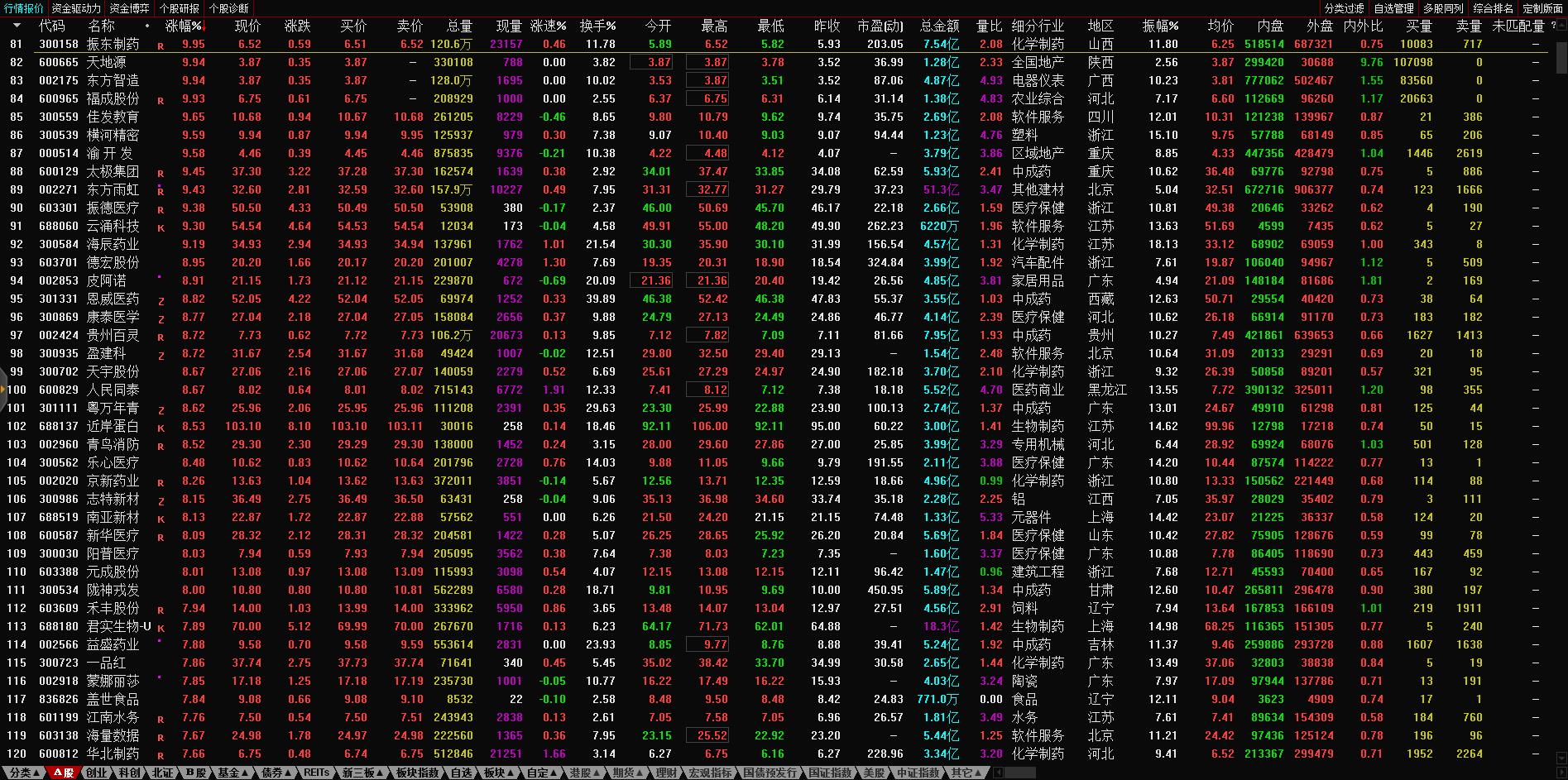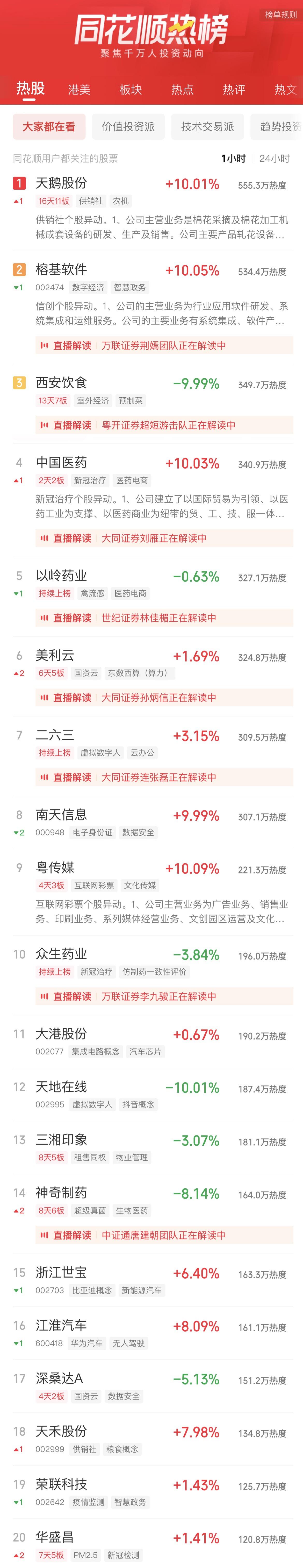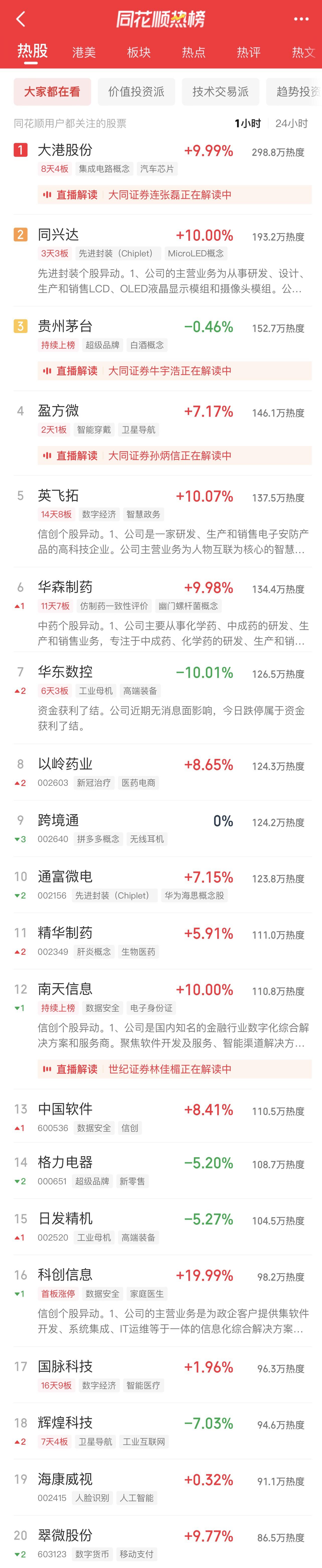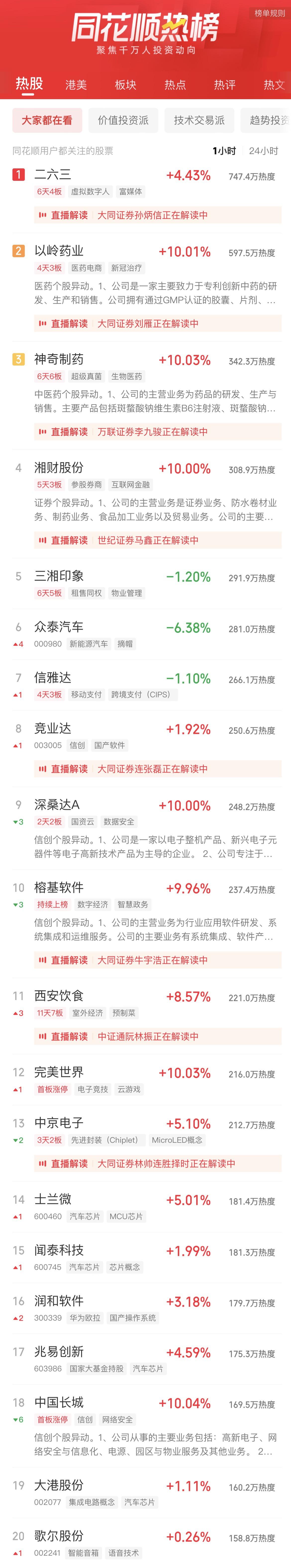 09:37 中药股持续活跃,抗病毒方向领涨,贵州百灵(002424)继续涨停2连板,新华制药(000756)、葫芦娃(605199)、亨迪药业(301211)、翰宇药业(300199)、以岭药业(002603)等纷纷冲高。
