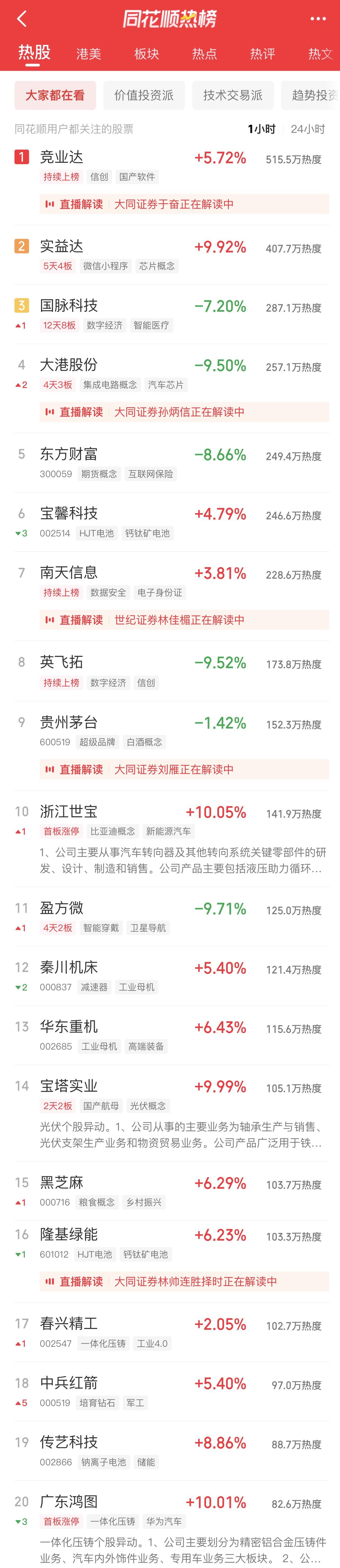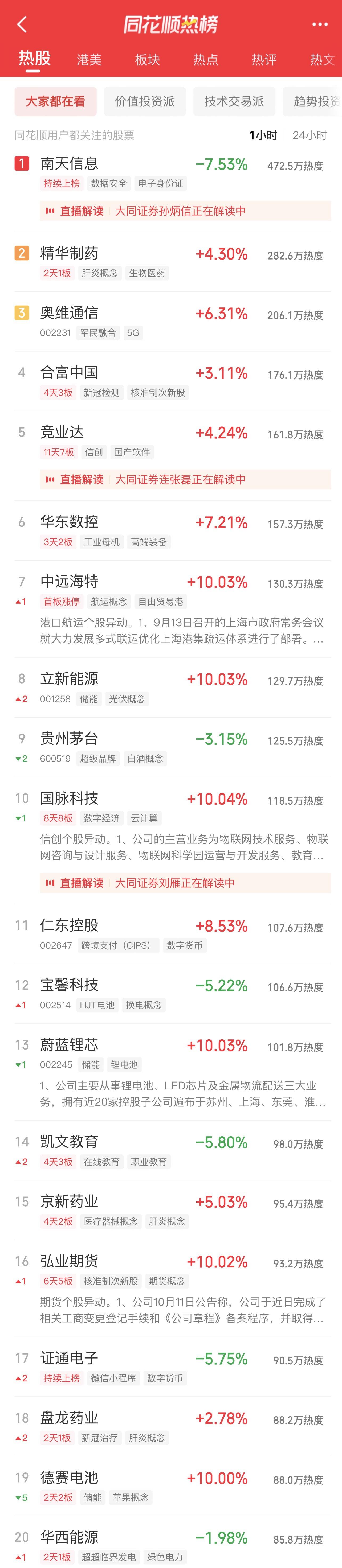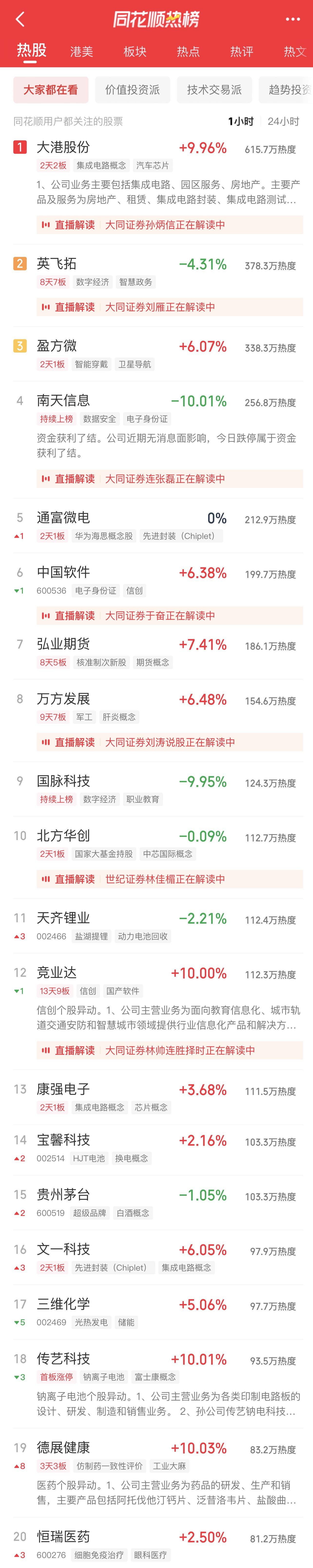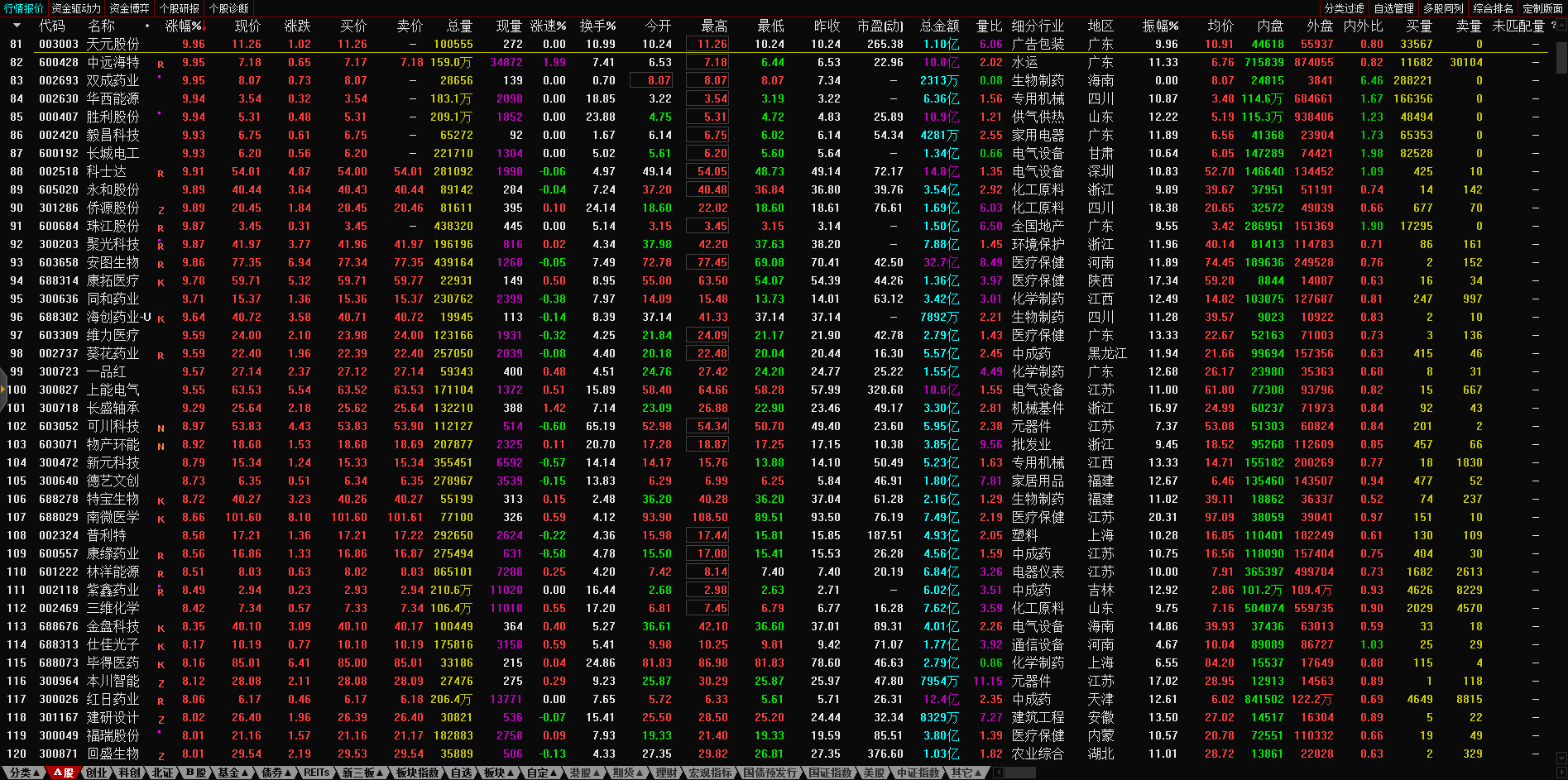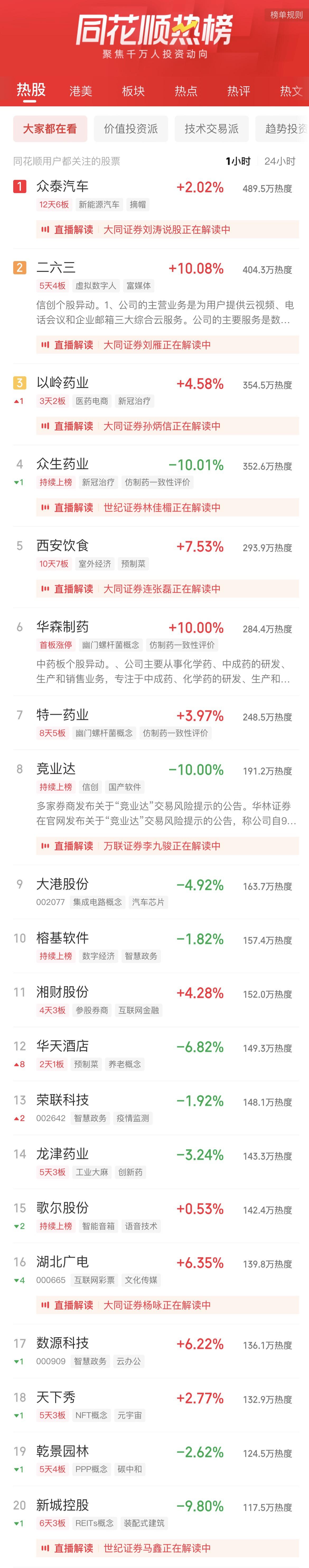 09:37 中药股持续活跃,抗病毒方向领涨,贵州百灵(002424)继续涨停2连板,新华制药(000756)、葫芦娃(605199)、亨迪药业(301211)、翰宇药业(300199)、以岭药业(002603)等纷纷冲高。