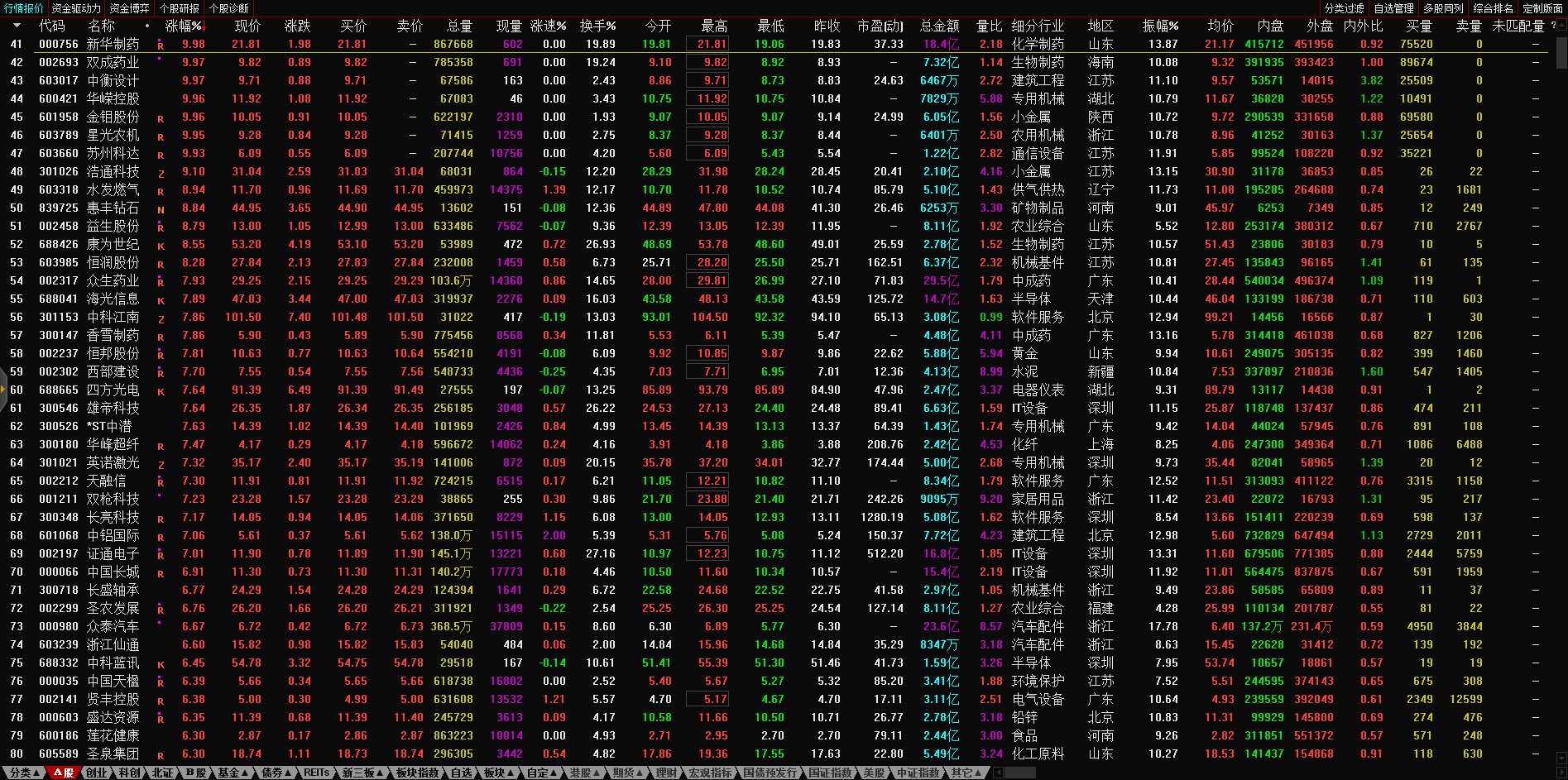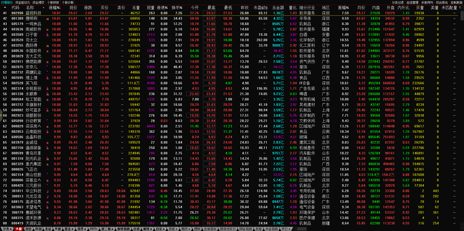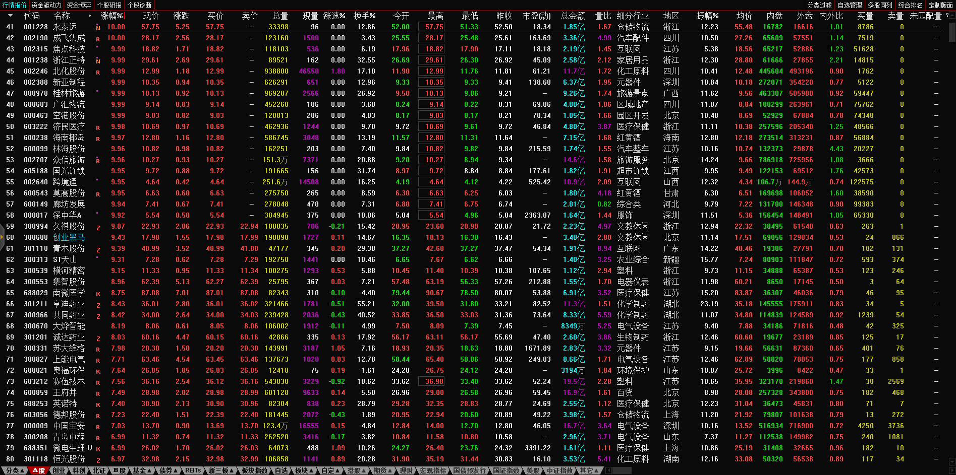 13:10 午后两市炸板个股继续增多,永顺泰、文科园林(002775)、京山轻机、天顺股份(002800)、广州浪奇(000523)、盛通股份(002599)、贵州百灵等超30股相继炸板,目前炸板率近60%。