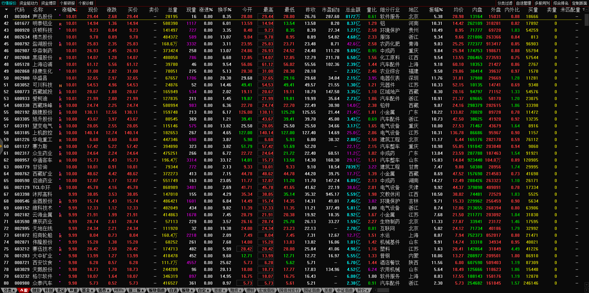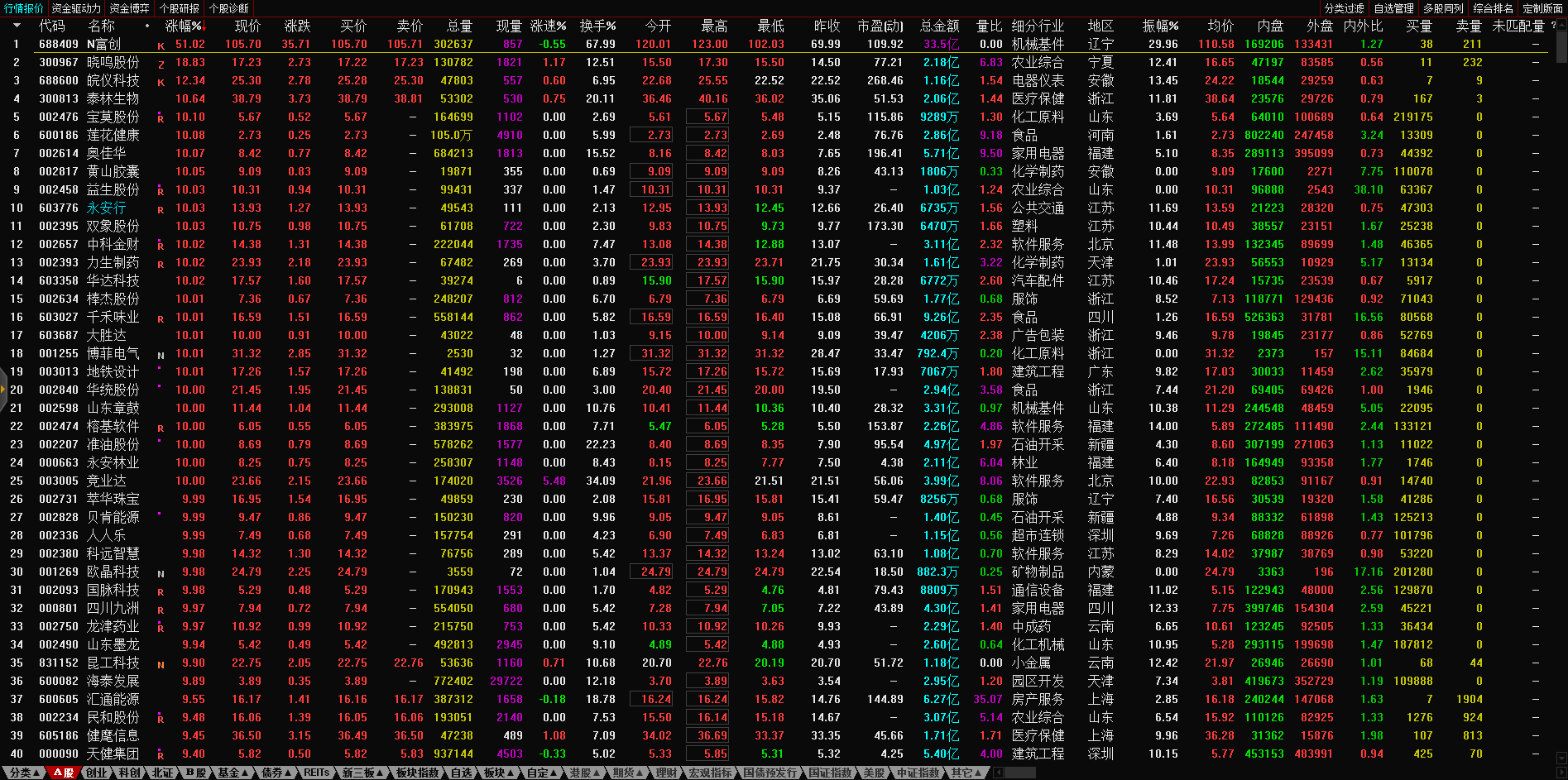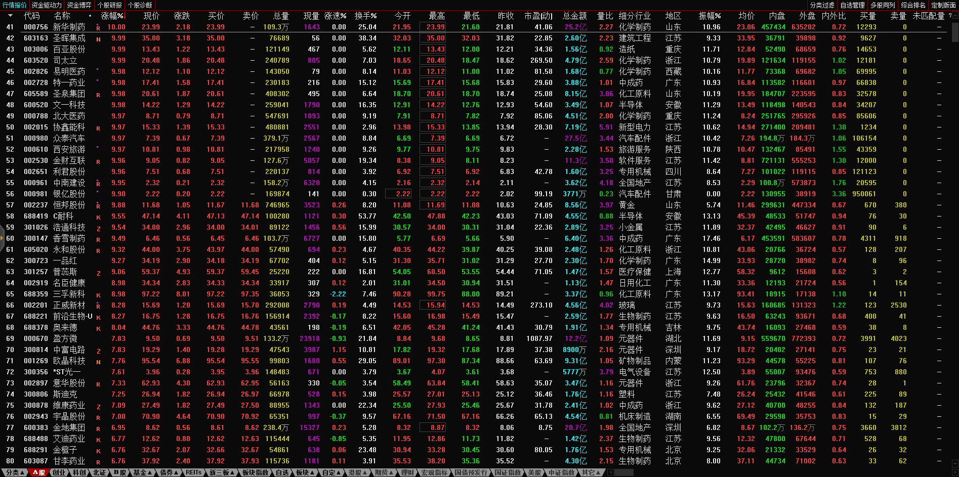 13:10 午后两市炸板个股继续增多,永顺泰、文科园林(002775)、京山轻机、天顺股份(002800)、广州浪奇(000523)、盛通股份(002599)、贵州百灵等超30股相继炸板,目前炸板率近60%。