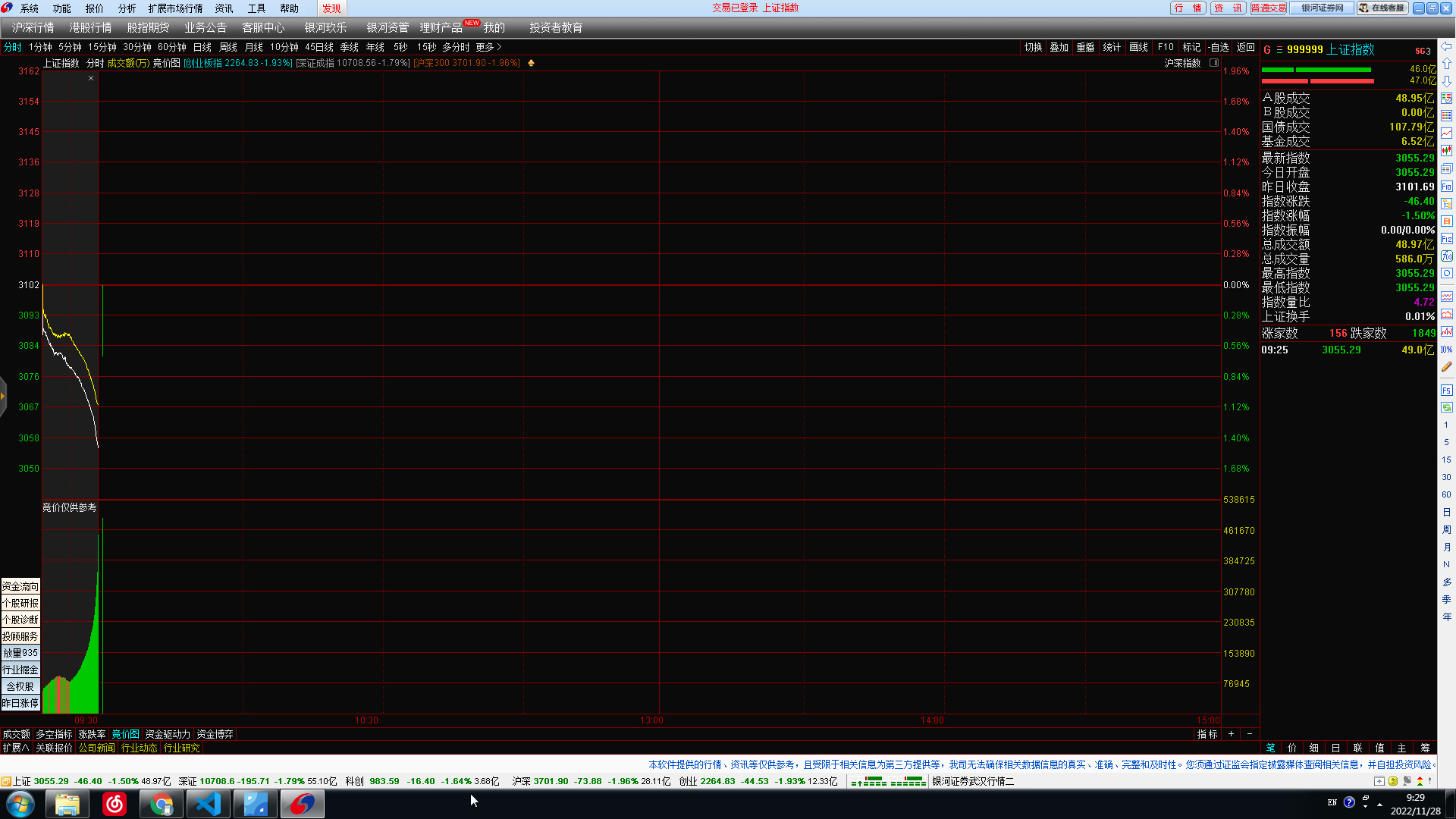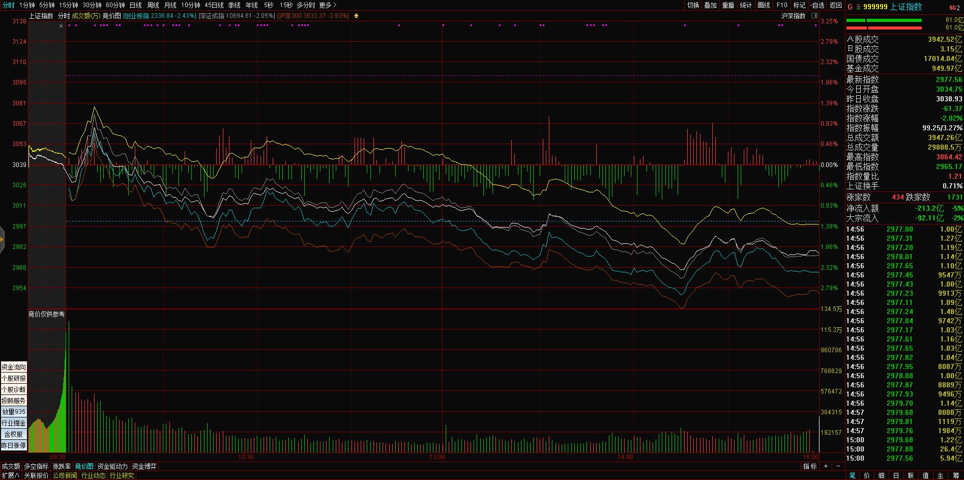 09:25 A股三大指数集体低开,沪指开跌0.36%,深成指开跌0.4%,创业板指开跌0.46%,抗病毒面料、医药商业板块开盘领跌。