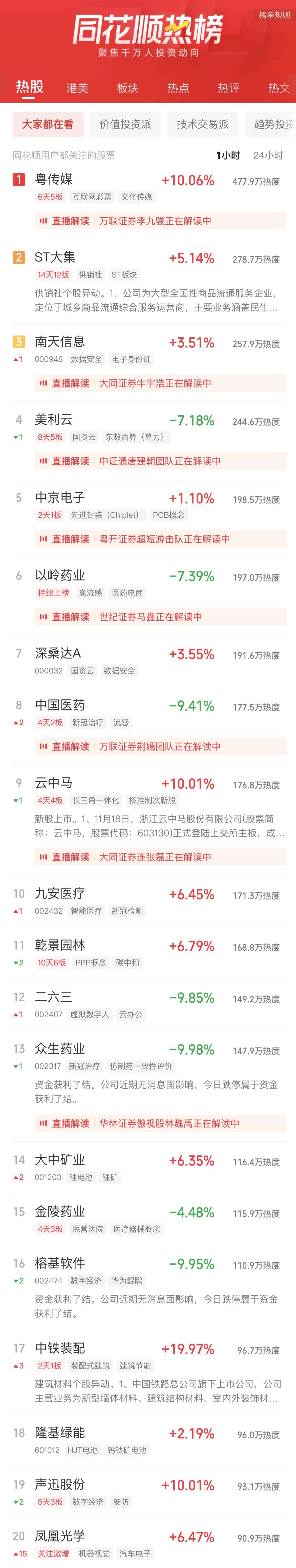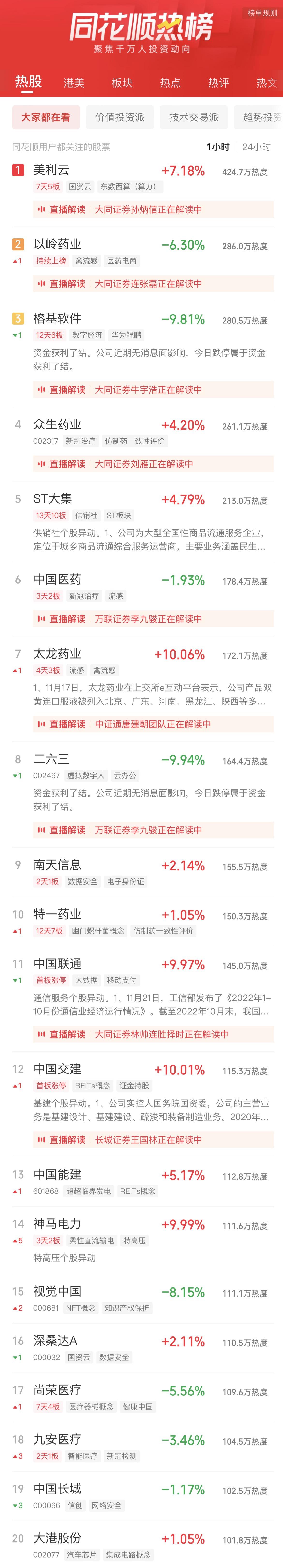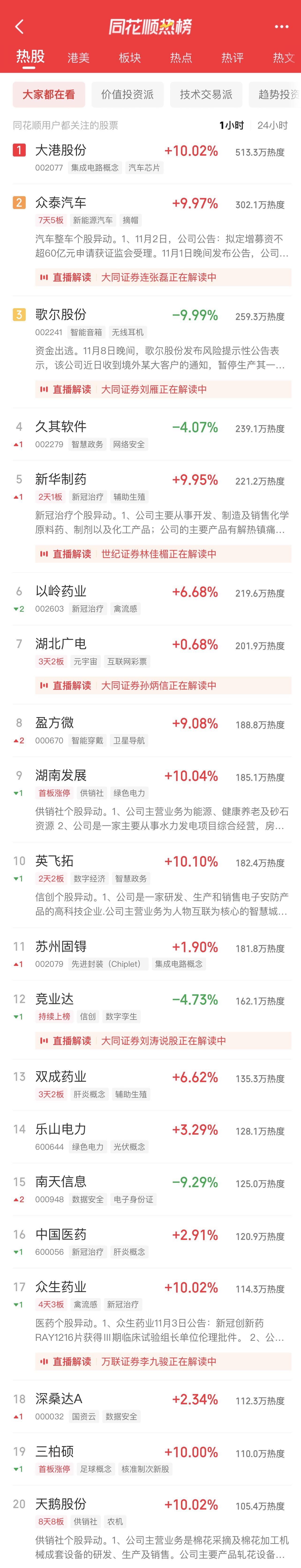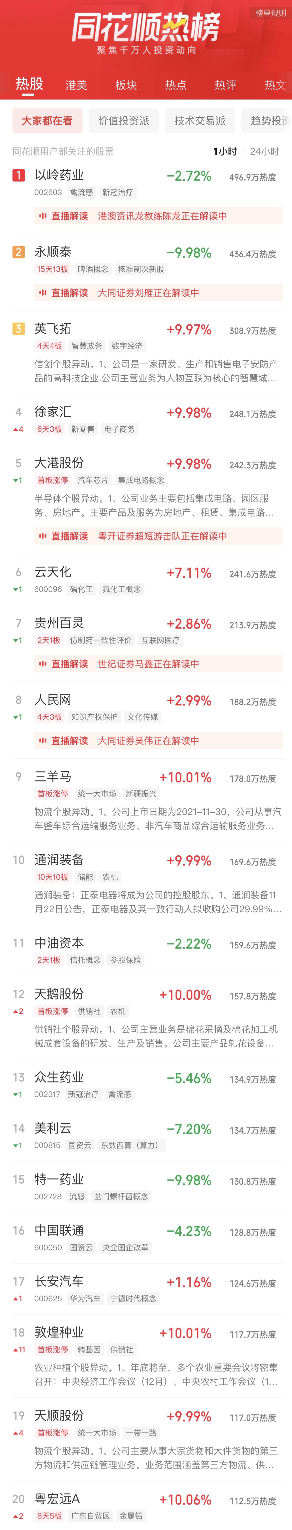 11:06 新冠治疗板块冲高回落,特一药业(002728)一度触及跌停,热景生物、众生药业(002317)、康缘药业(600557)、香雪制药(300147)等跟跌。