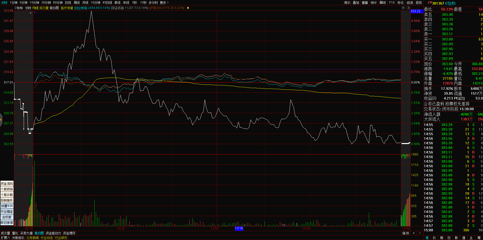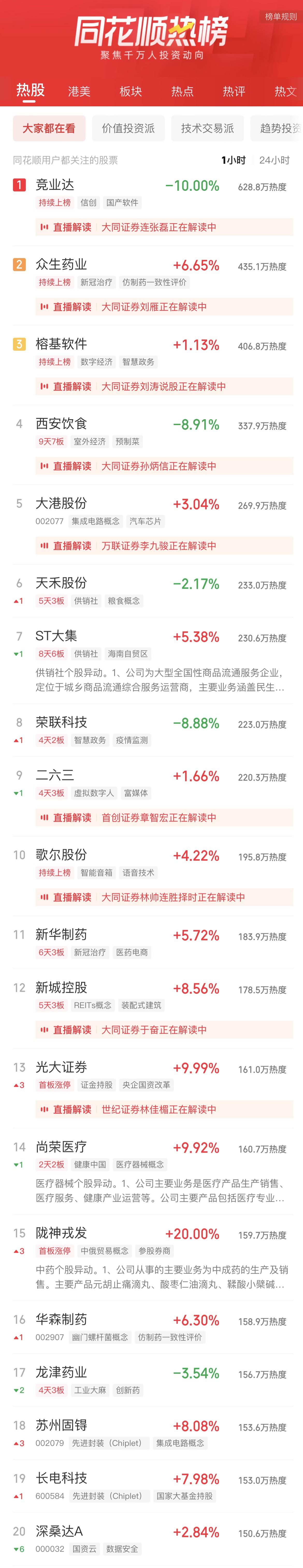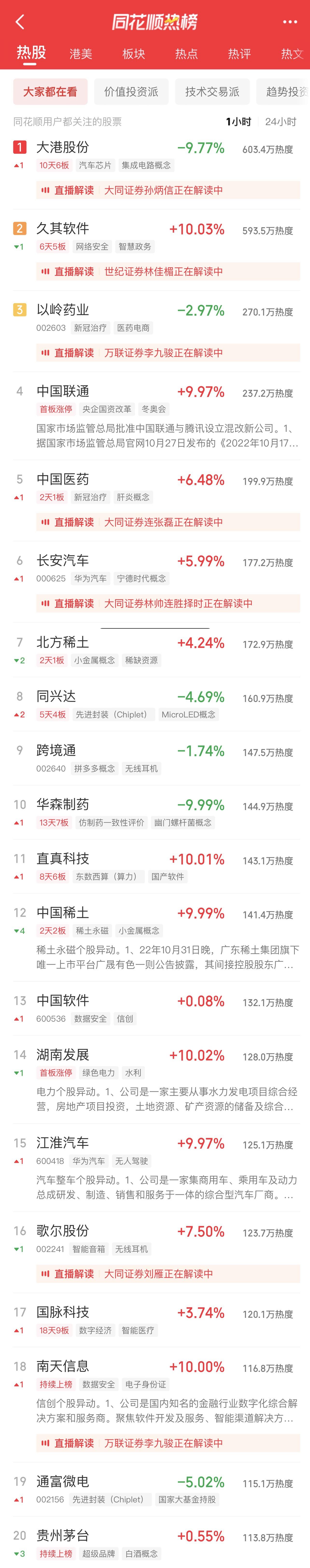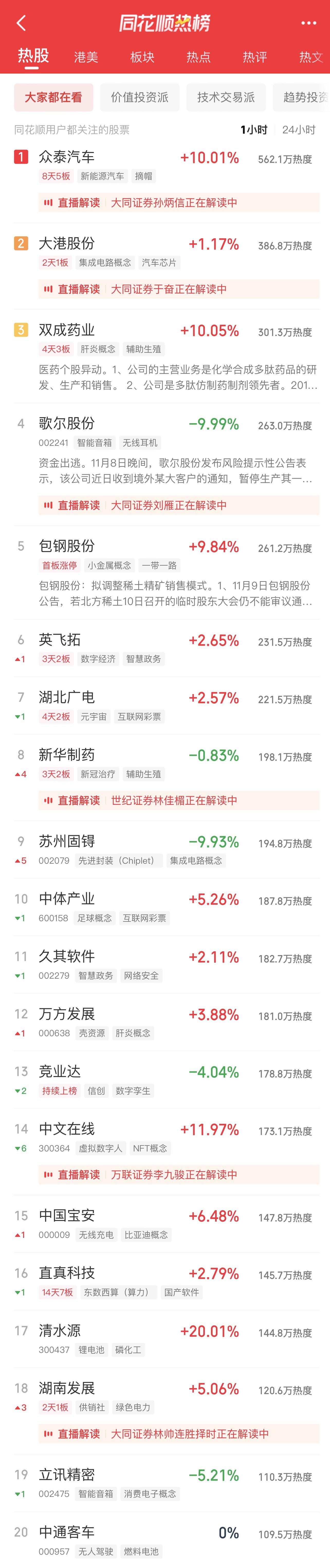 11:06 新冠治疗板块冲高回落,特一药业(002728)一度触及跌停,热景生物、众生药业(002317)、康缘药业(600557)、香雪制药(300147)等跟跌。