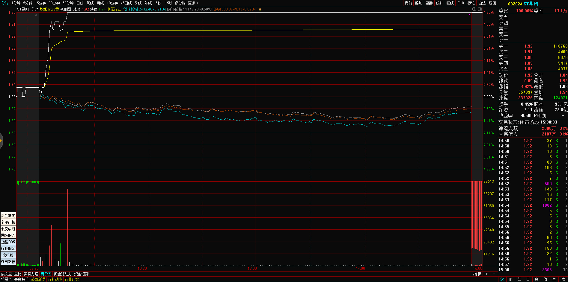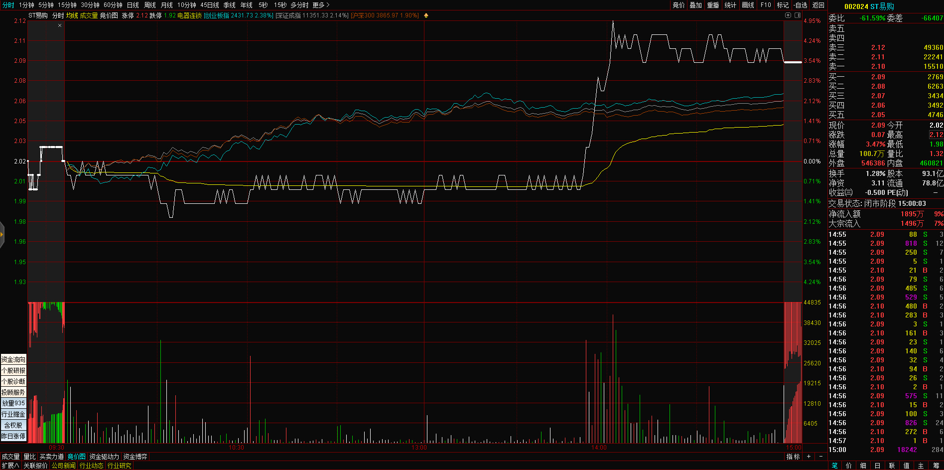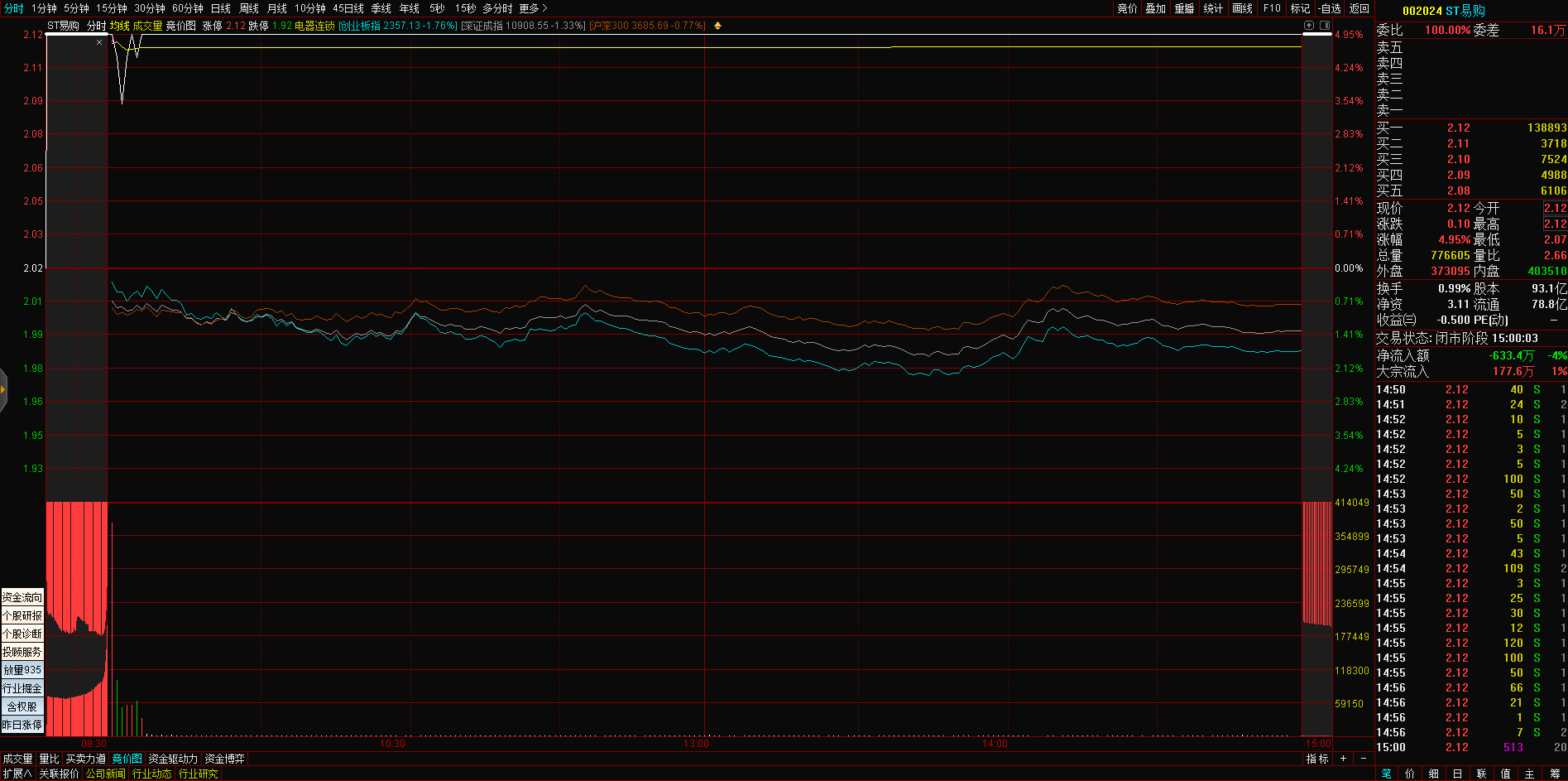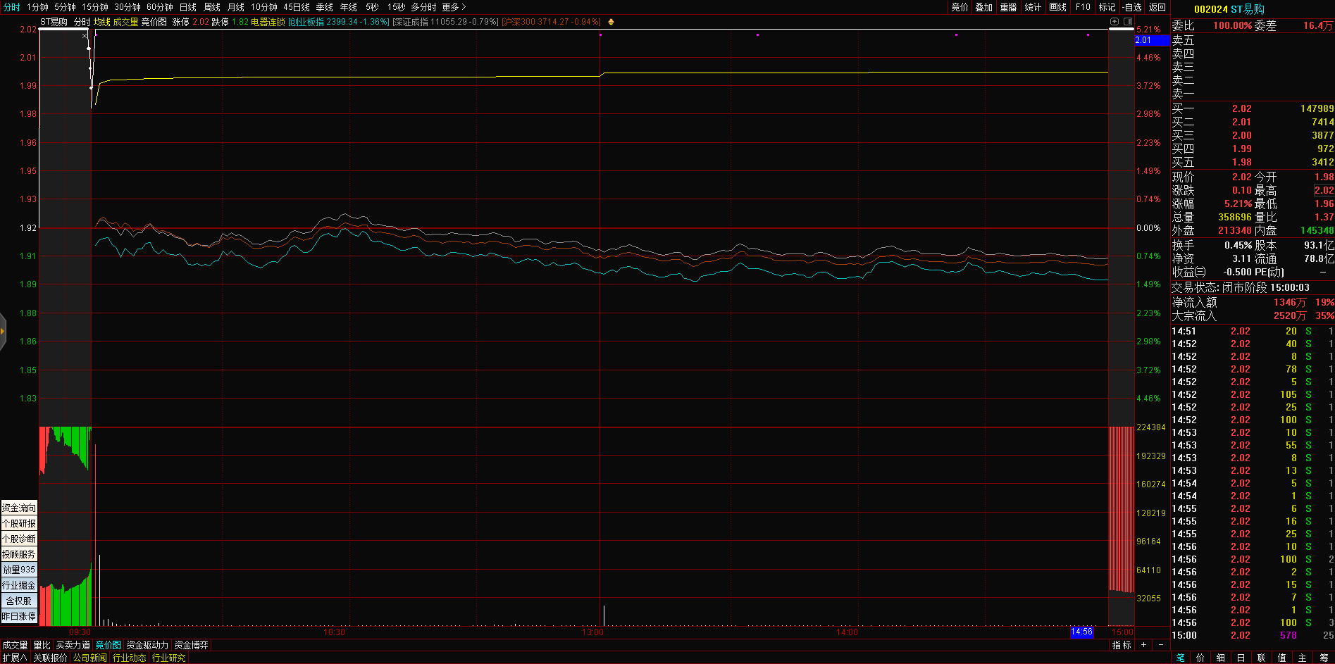 09:29 人民网开盘一字涨停,录得4连板。