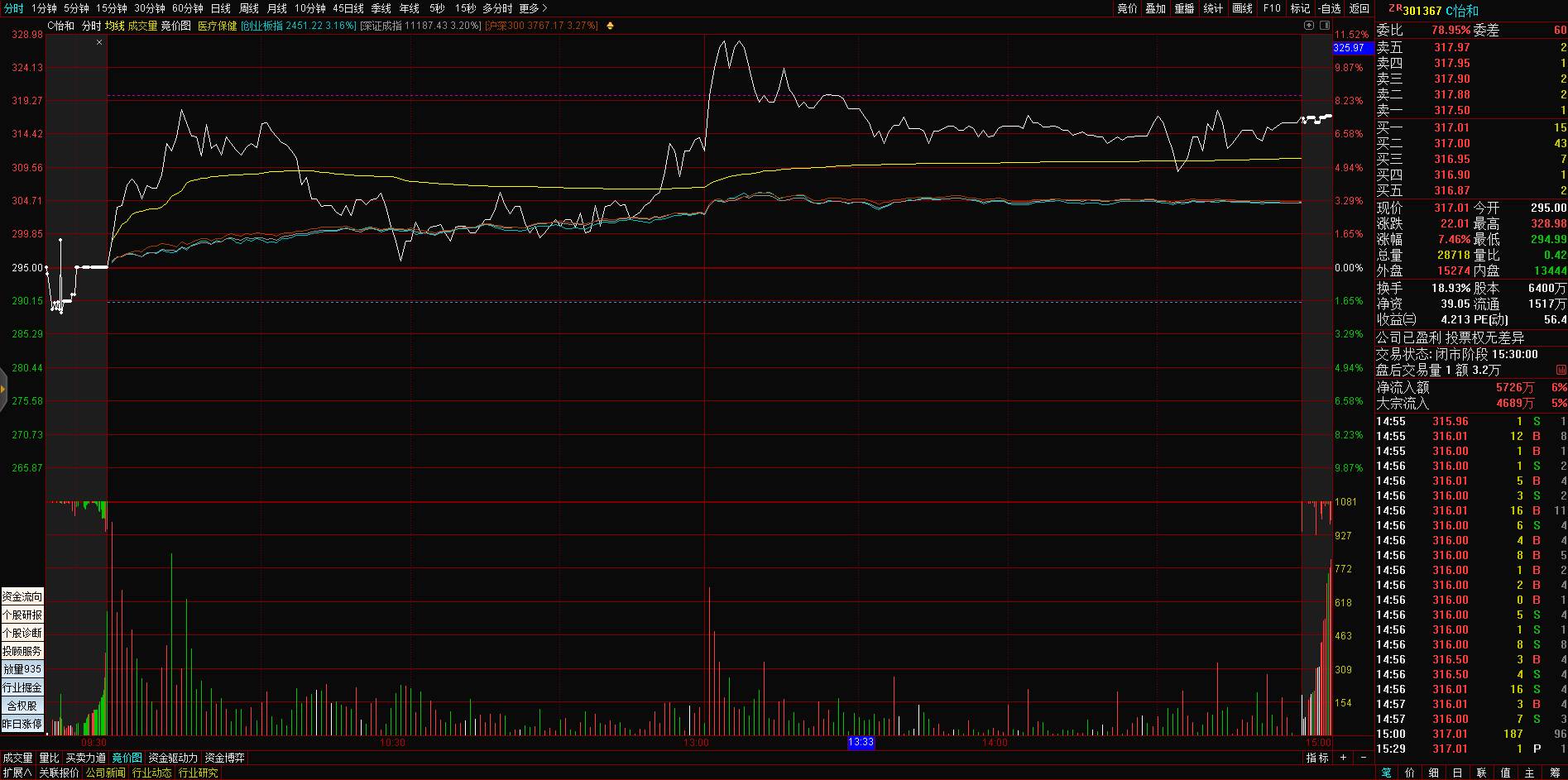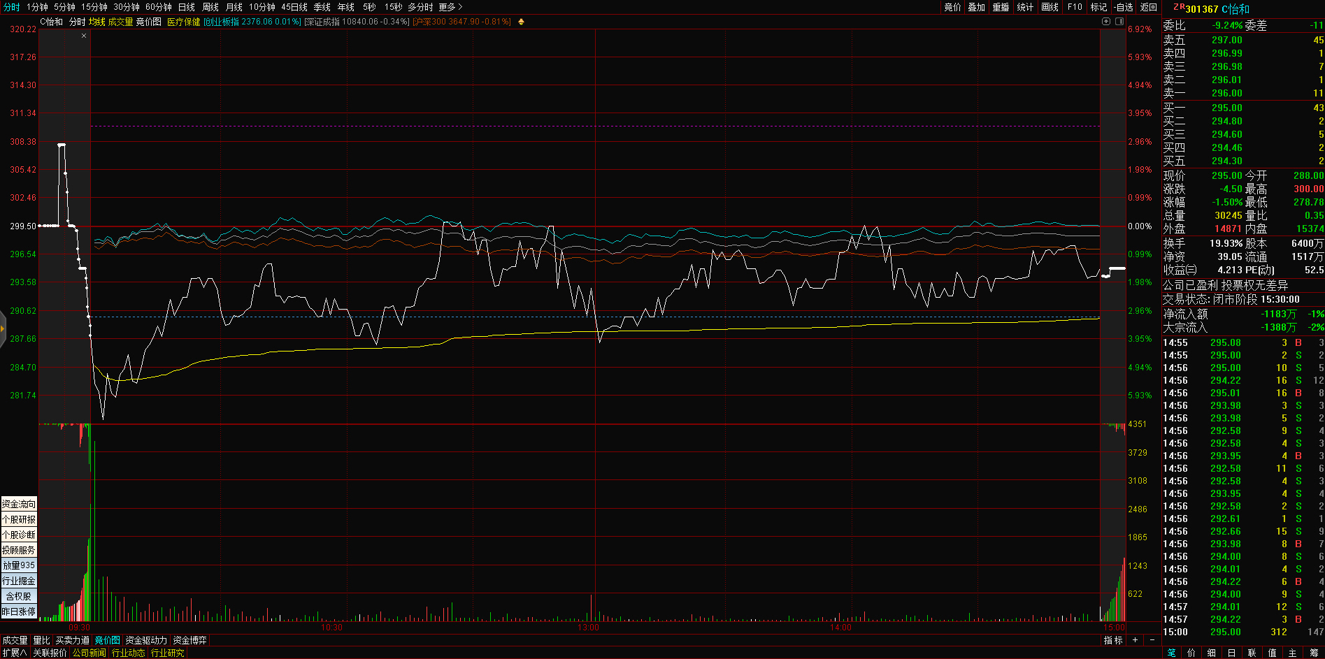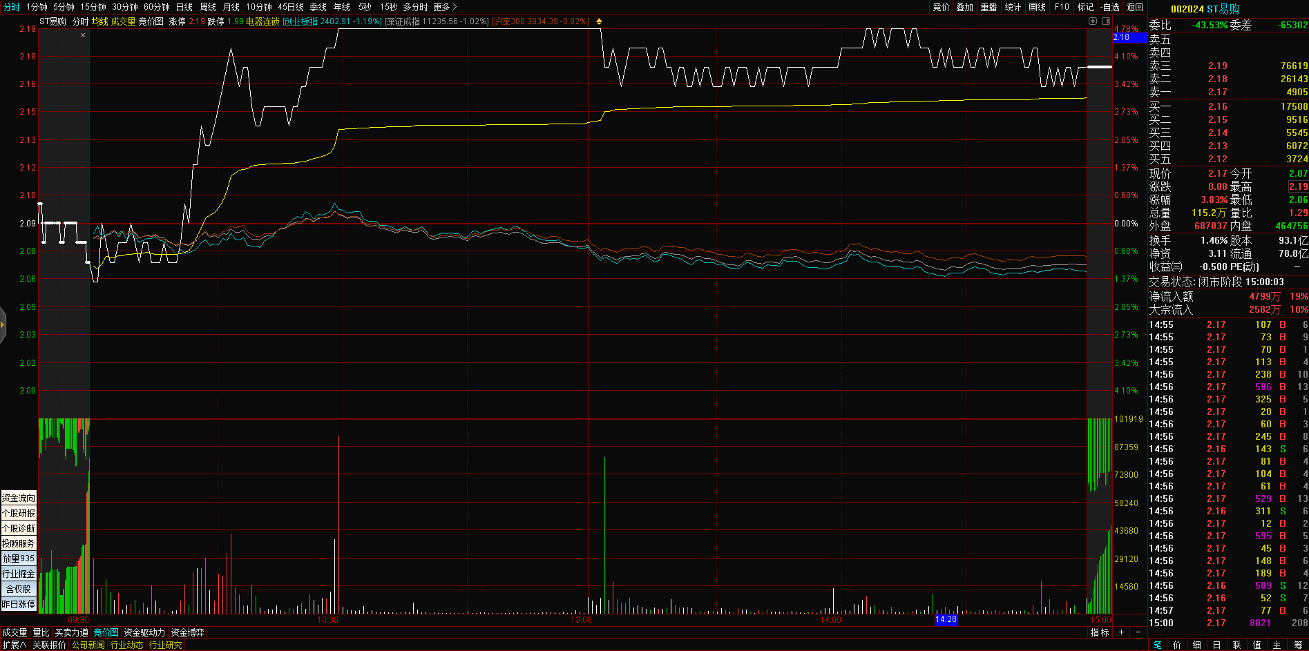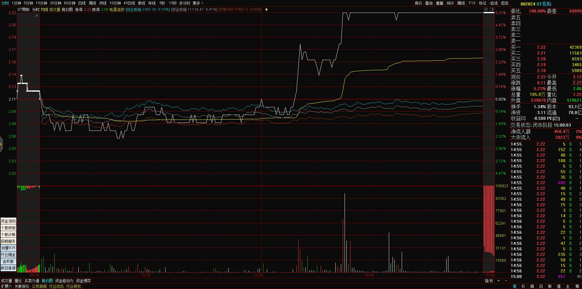 09:29 人民网开盘一字涨停,录得4连板。