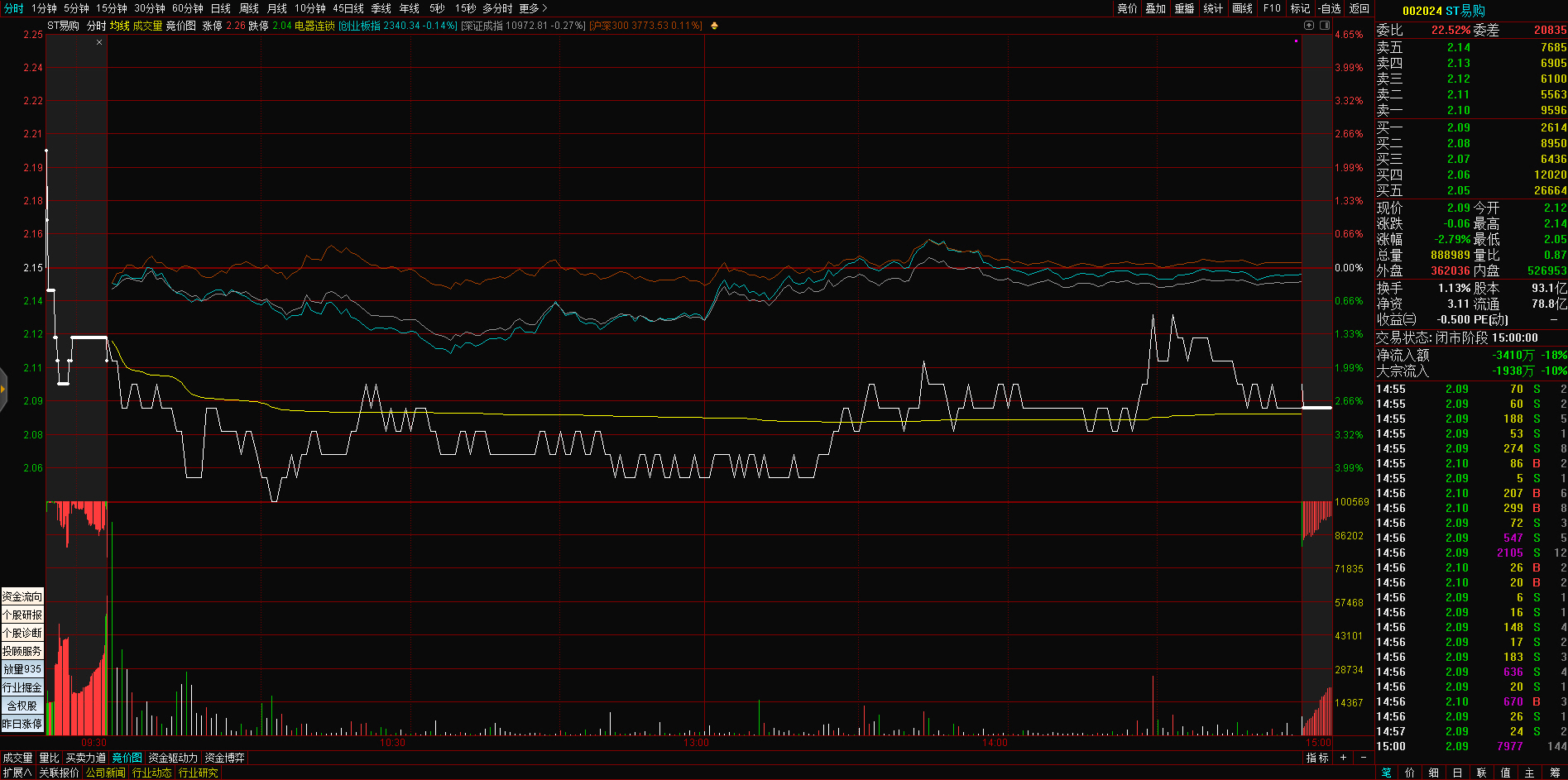 10:20 数据确权板块震荡走低,佳华科技、安妮股份(002235)跌近5%,国脉科技(002093)、浙数文化(600633)、新华网(603888)、易华录(300212)等跟跌。