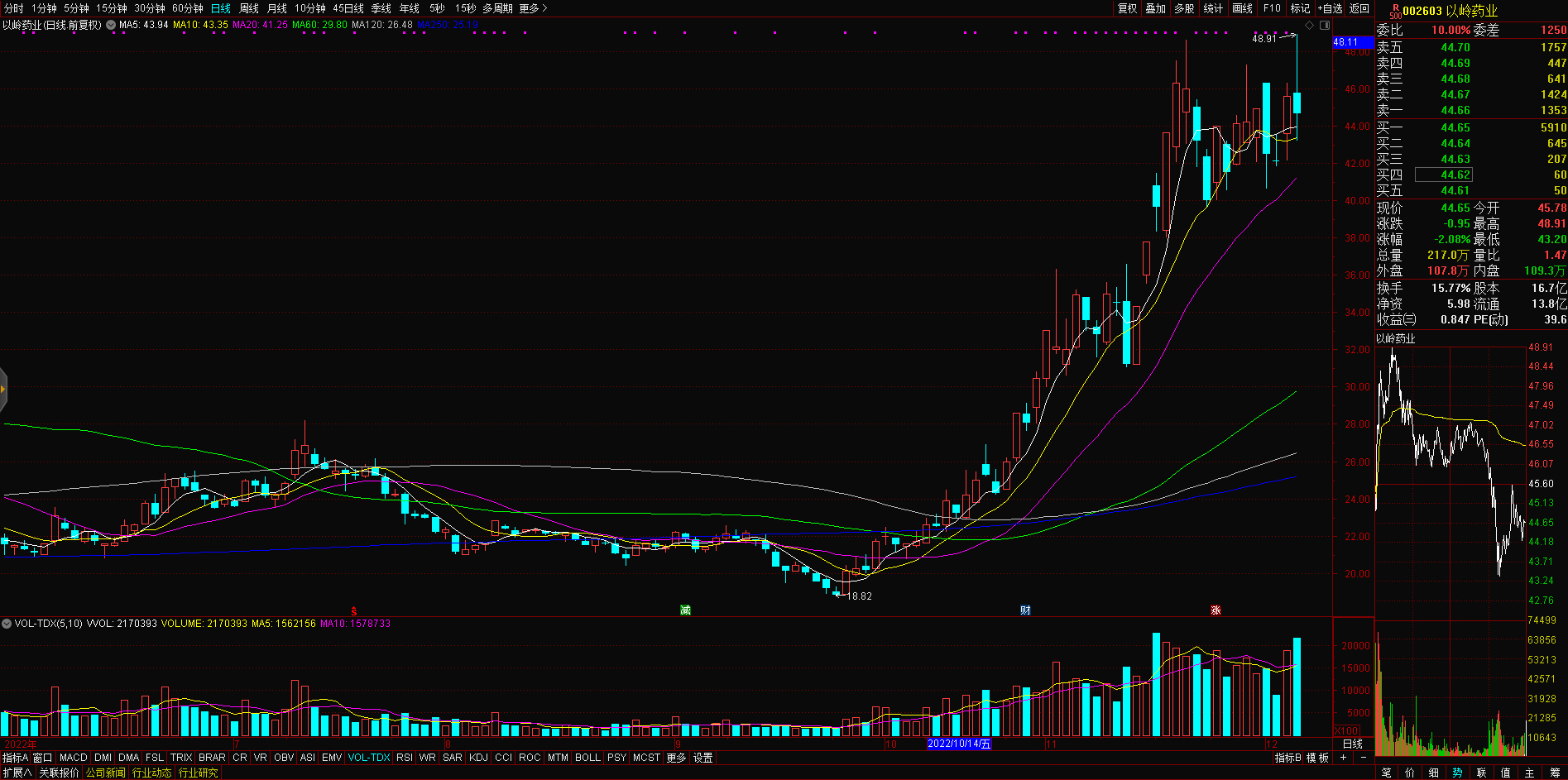 14:21 以岭药业午后跳水,盘中一度跌超5%,该股早盘一度涨超7%续创历史新高。